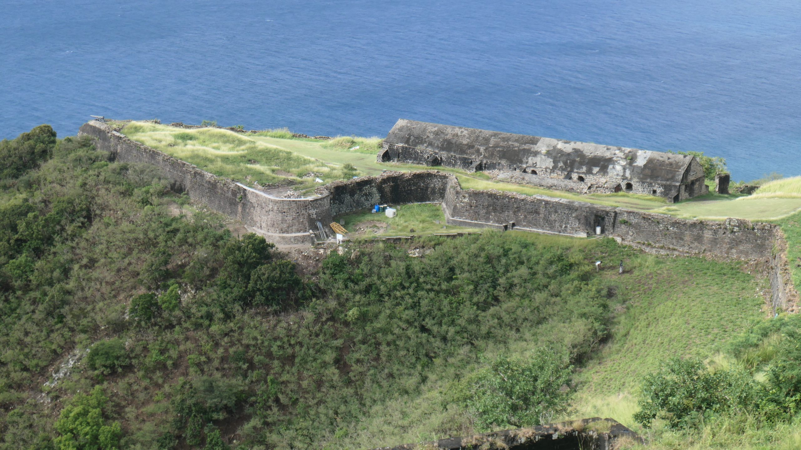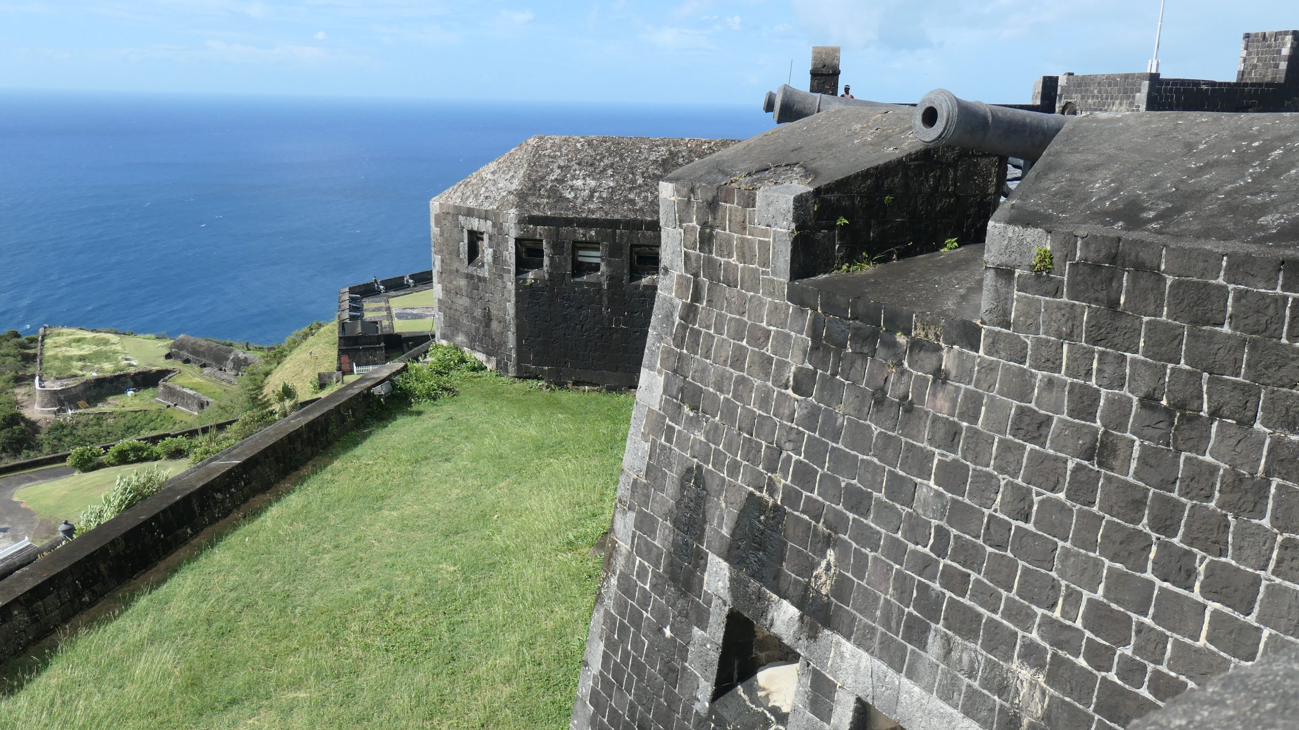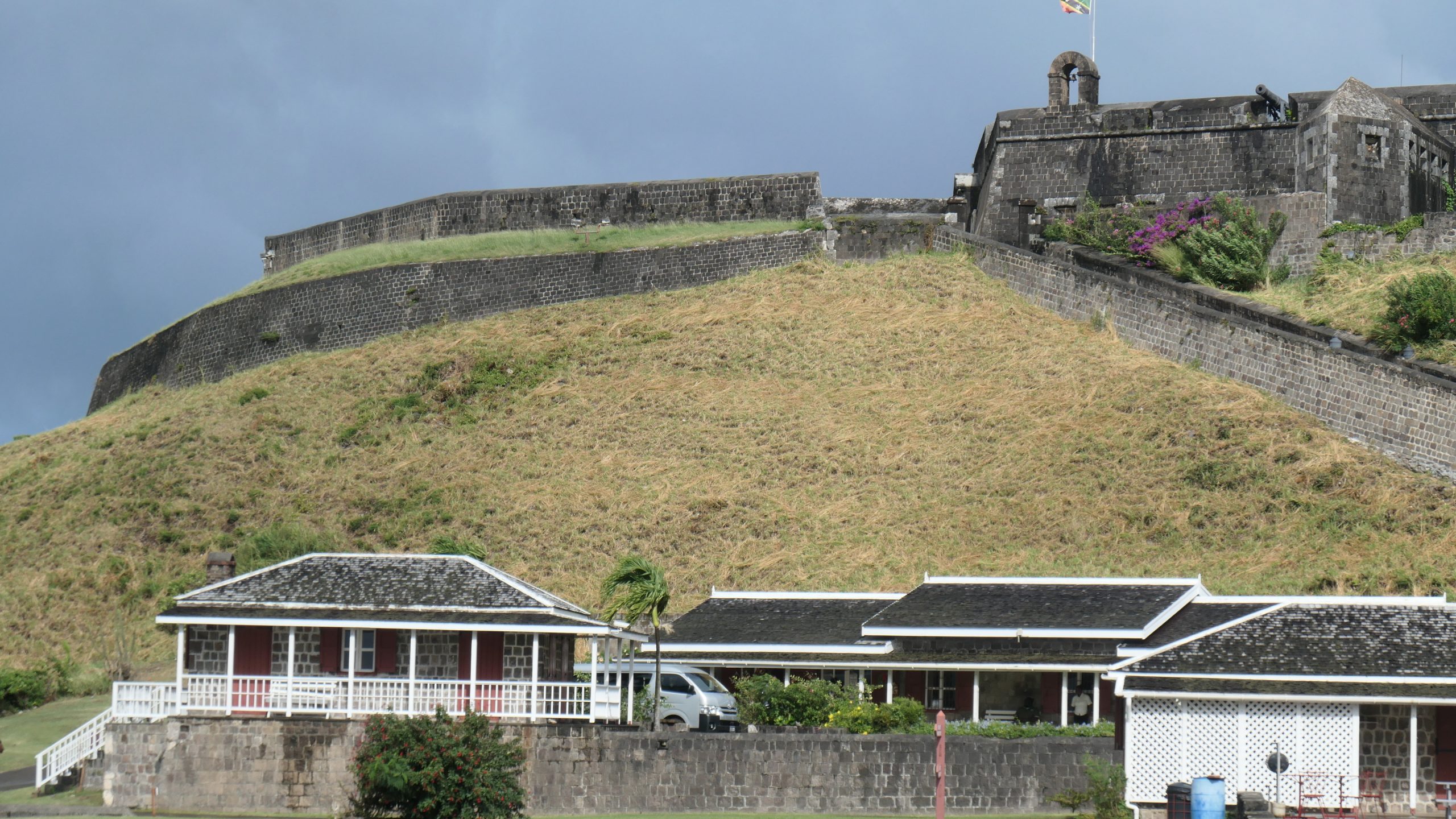 Das Fort George auf dem Brimstone Hill von St Kitts zeugt von den Auseinandersetzungen um die Inseln. Beeindruckend ist die Leistung der Briten, die auf einem abgeflachten Berg im Nordwesten von St Kitts im 17.Jahrhundert mit der Errichtung einer massiven Verteidigungsanlage begannen. Britische Armeeingenieure hatten geplant, aber gebaut wurde das Fort von afrikanischen Sklaven.
