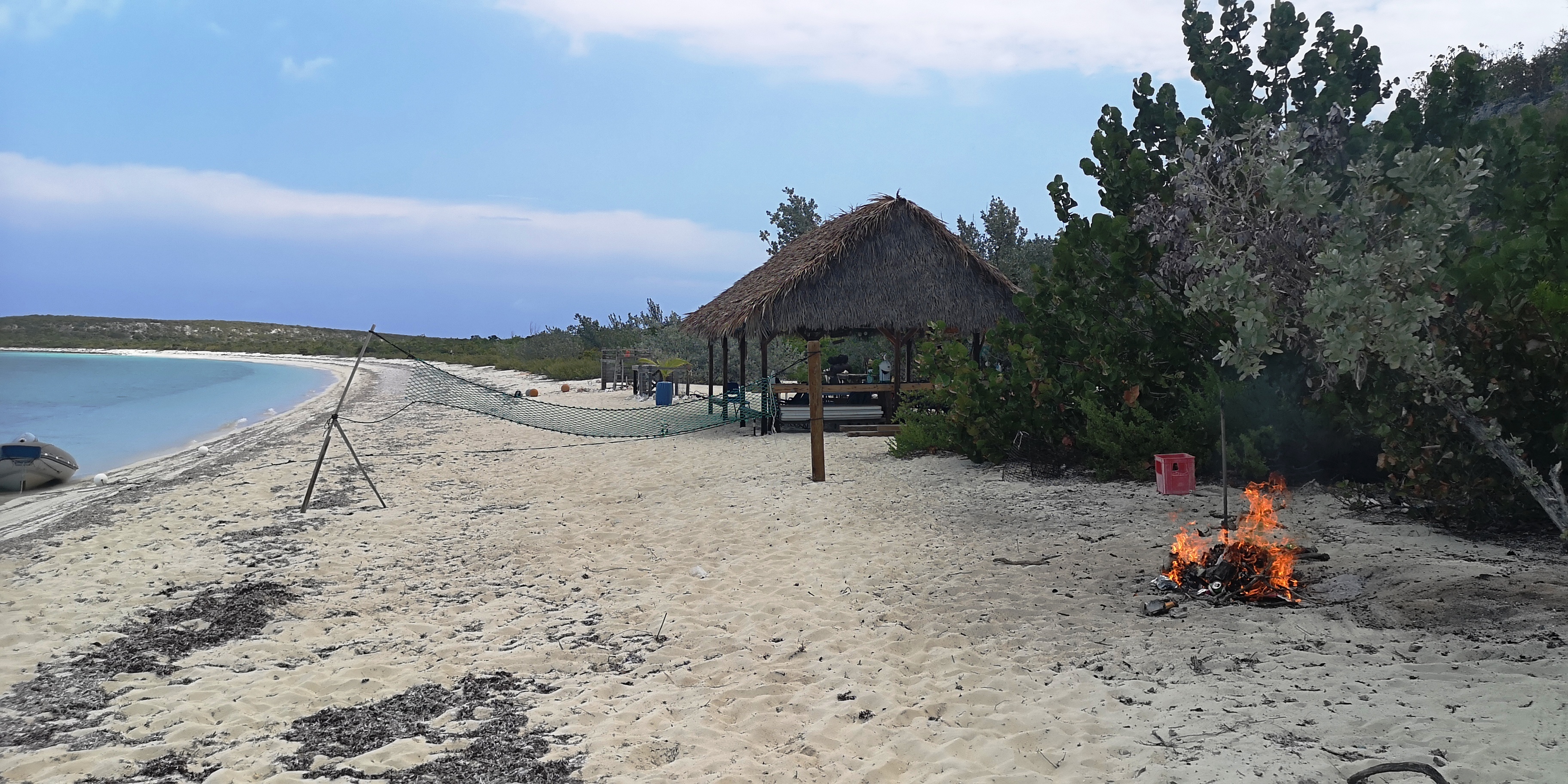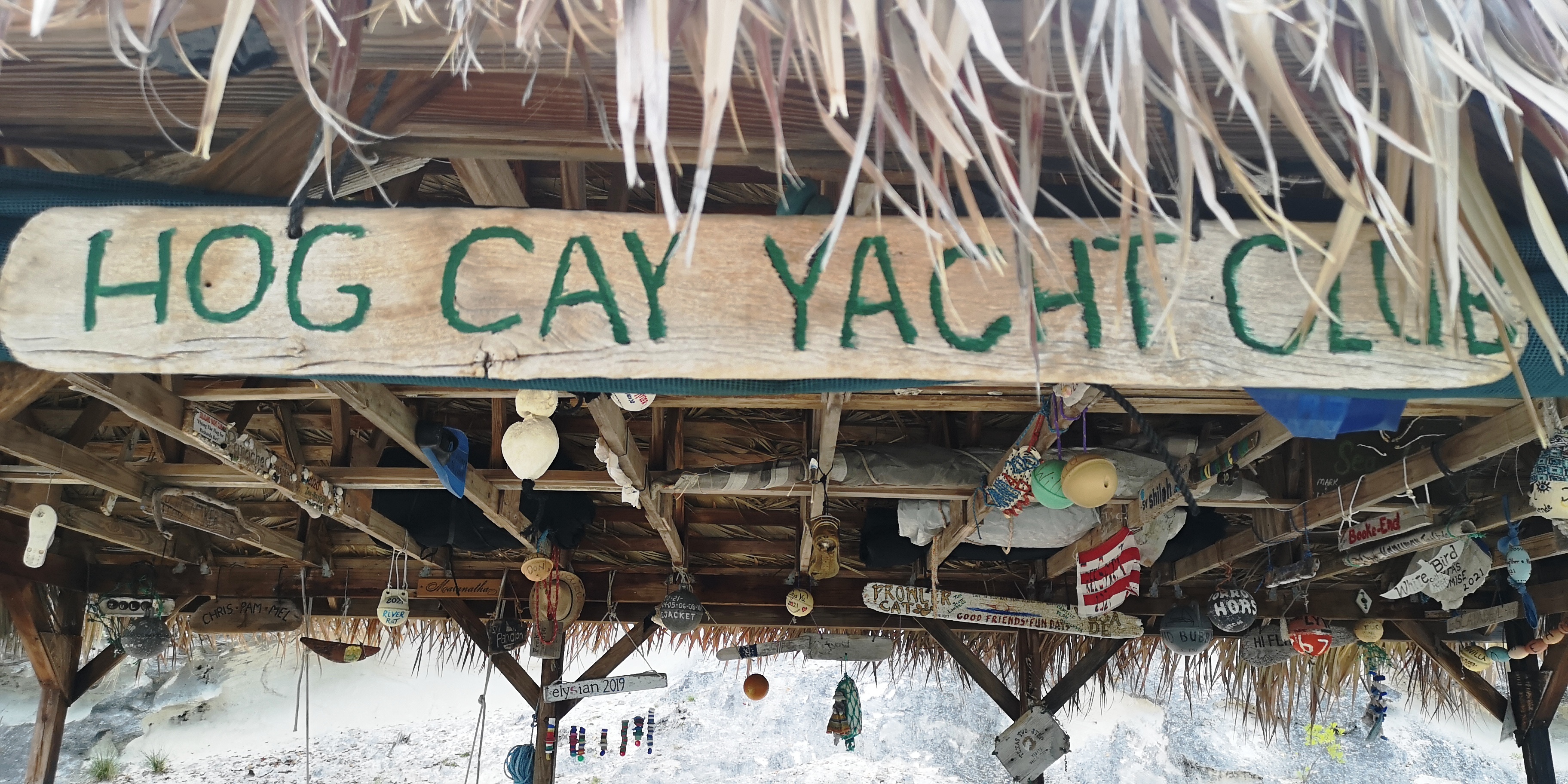 Segler sind auf Hog Cay wirklich willkommen. Maxine, die Besitzerin des kleinen Marktes der 20-Seelen-Gemeinde Duncan Town auf Ragged Island, hat Segler unterstützt, auf Hog Cay eine nette kleine Hütte zu bauen. Das weiß Rita, die eine schier unerschöpfliche Quelle an Informationen ist. Sie sagt, sogar die Regierung der Bahamas habe beim Bau der Hütte unterstützt. Der „Hog Cay Yacht Club“ dient uns allabendlich als netter Treffpunkt.