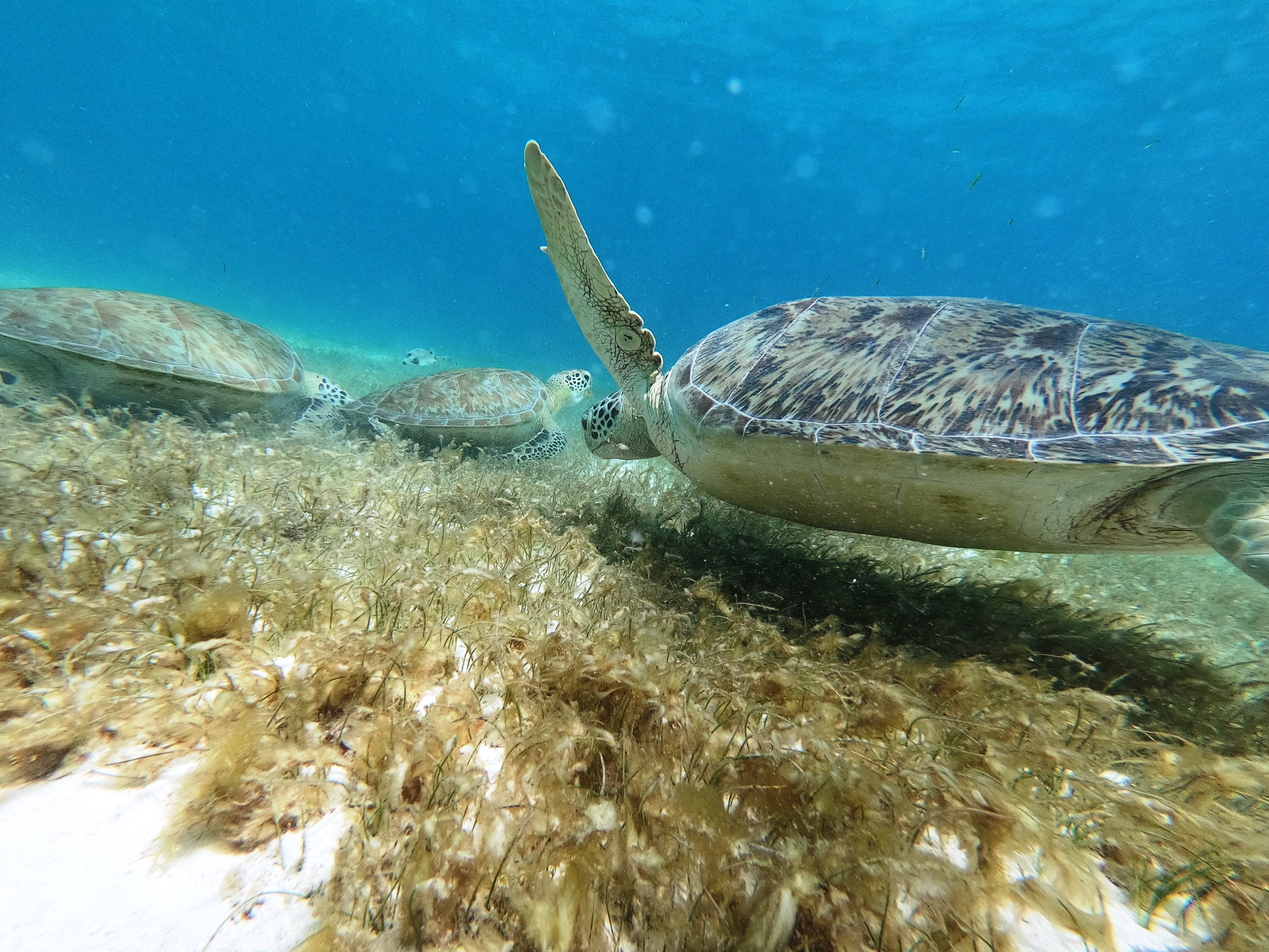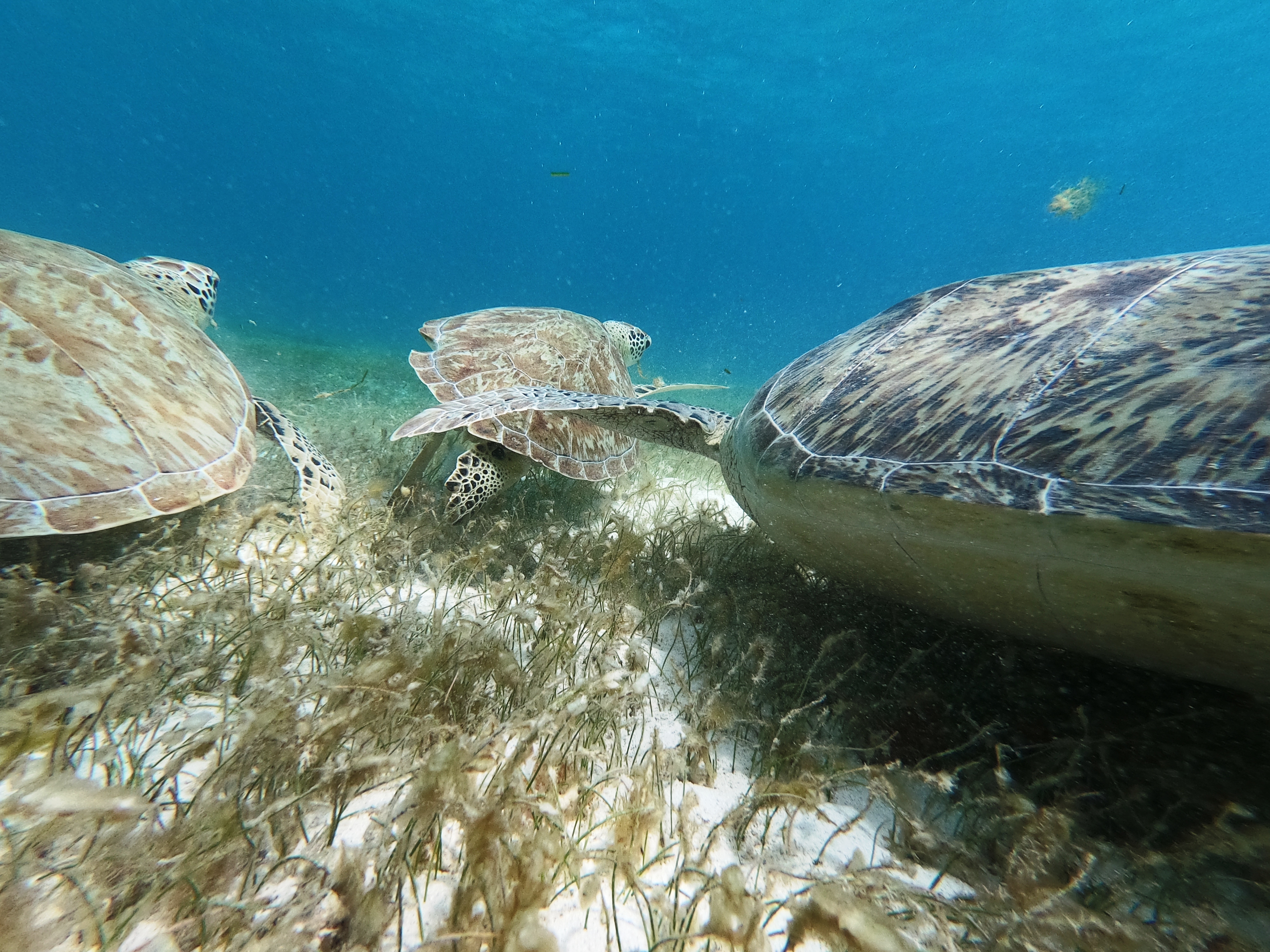 Die Schildkröten gehören auf den Tobago Cays fast schon zum Inventar: