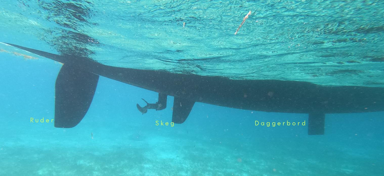 Damit sind die Daggerbords (oder „Steckschwerter“) rund 20-30cm tiefer als die Ruder. INVIA hat so einen um ca. 30cm vergrösserten Tiefgang. Als erstes sollten nun die Daggerbords aufsetzen. Zumindest bei Vorwärtsfahrt.