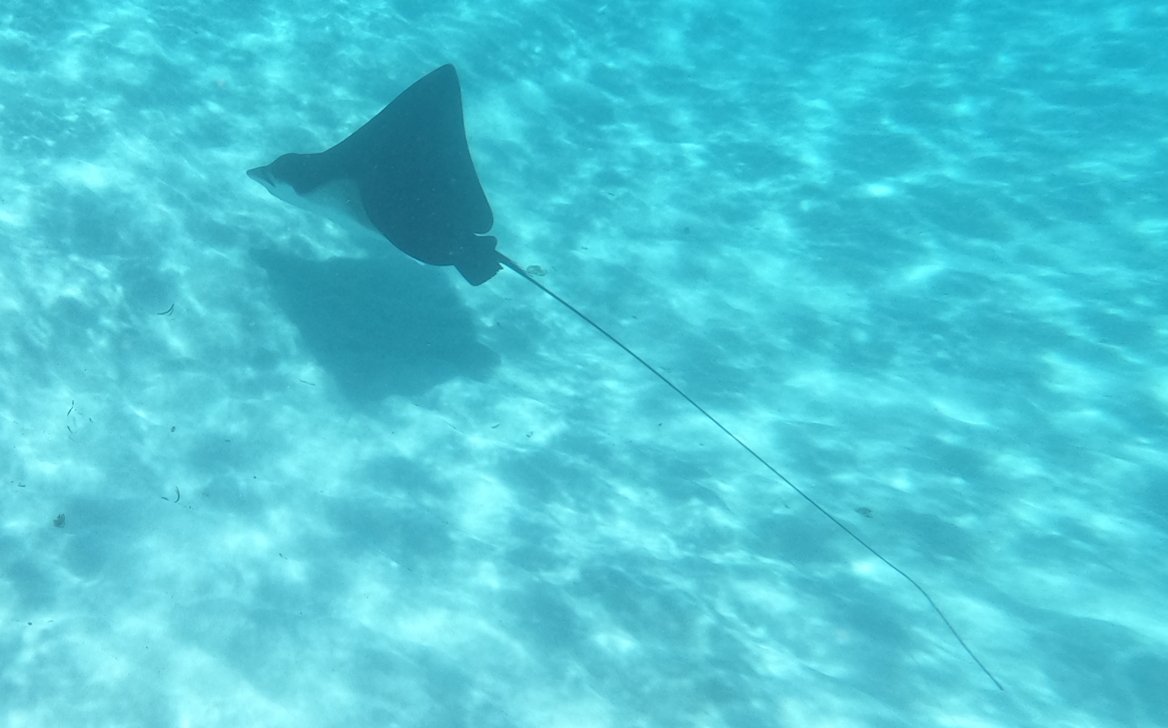 Aber der Captain kommt dennoch unzufrieden vom Anker abschnorcheln zurück. Der Anker liegt auf 5m Wassertiefe unter einer armdicken Kette. Die ist wohl am Boden der Bucht geblieben von früher vorhandenen Mooringbojen. Zwischen 1 und 2h brauchen wir, bis wir das Problem gelöst haben, auf die Uhr hat dabei keiner von uns geschaut.