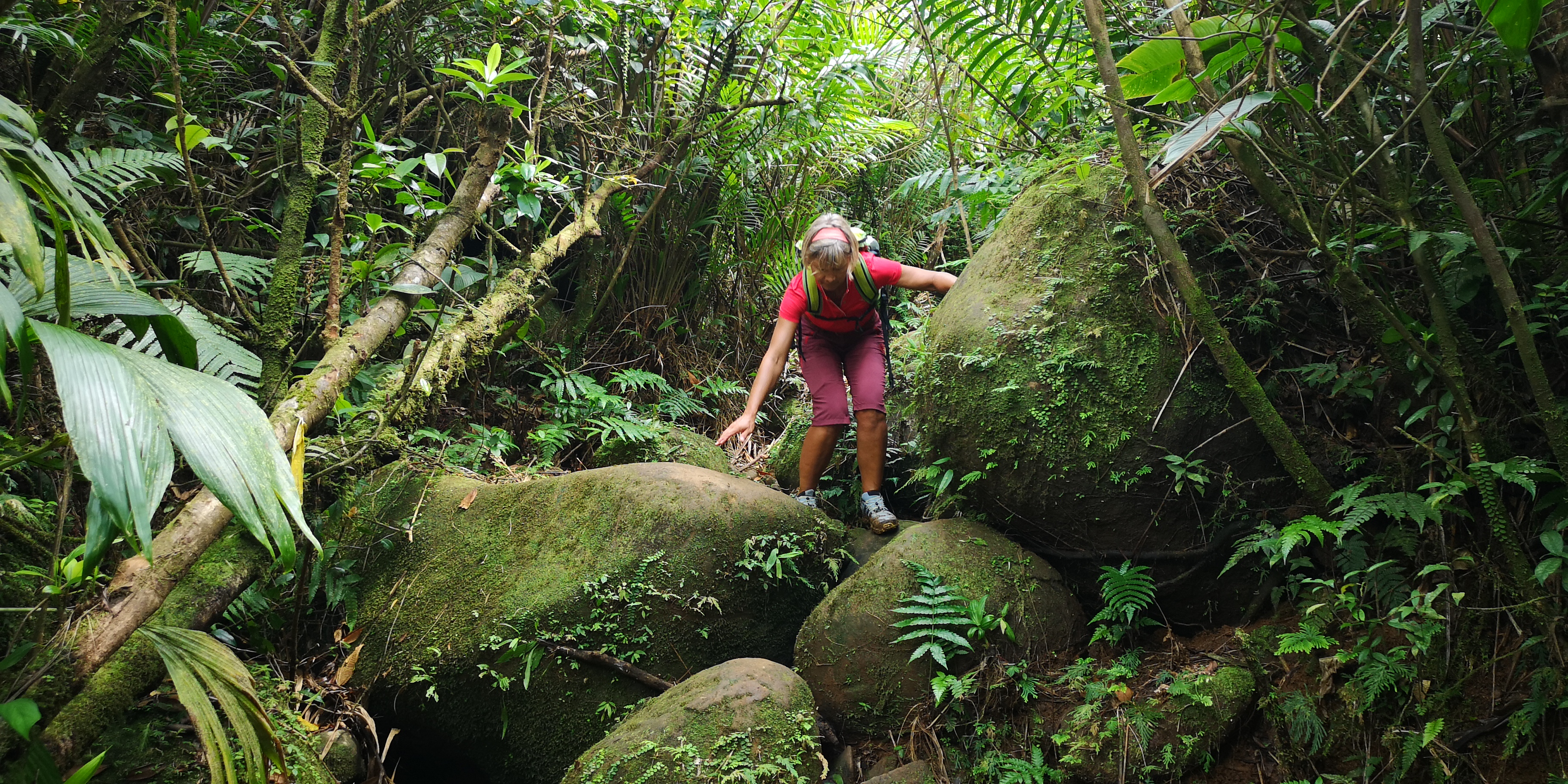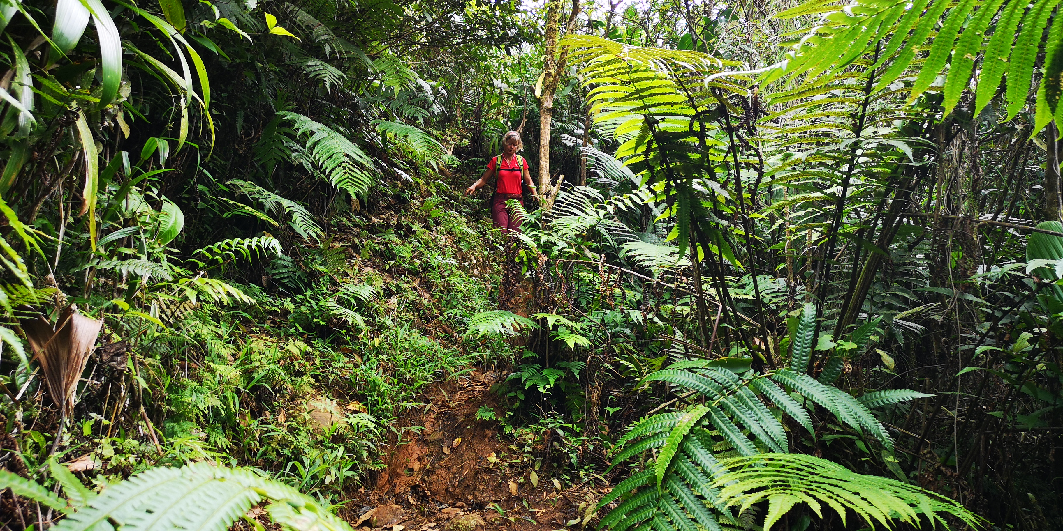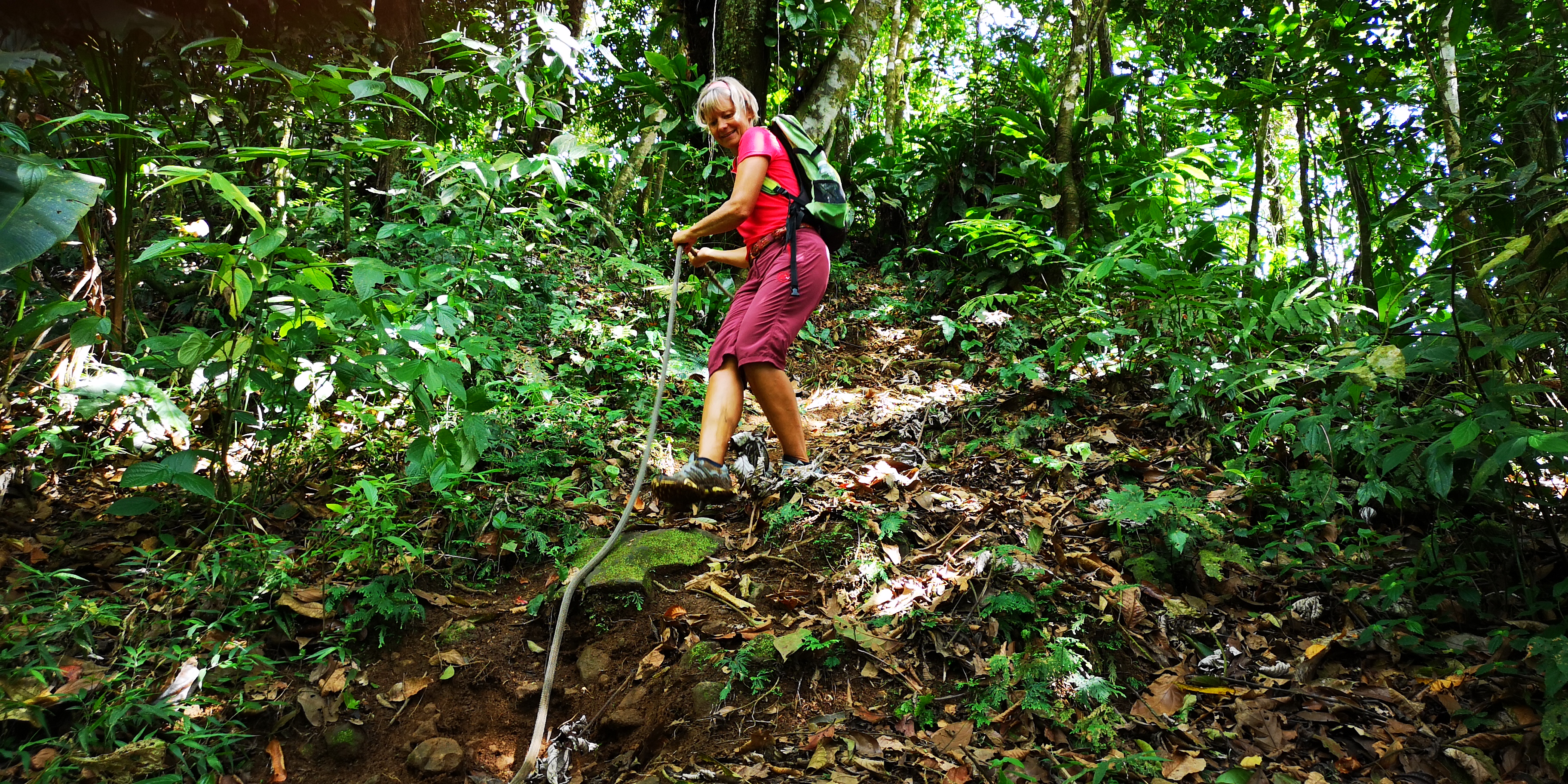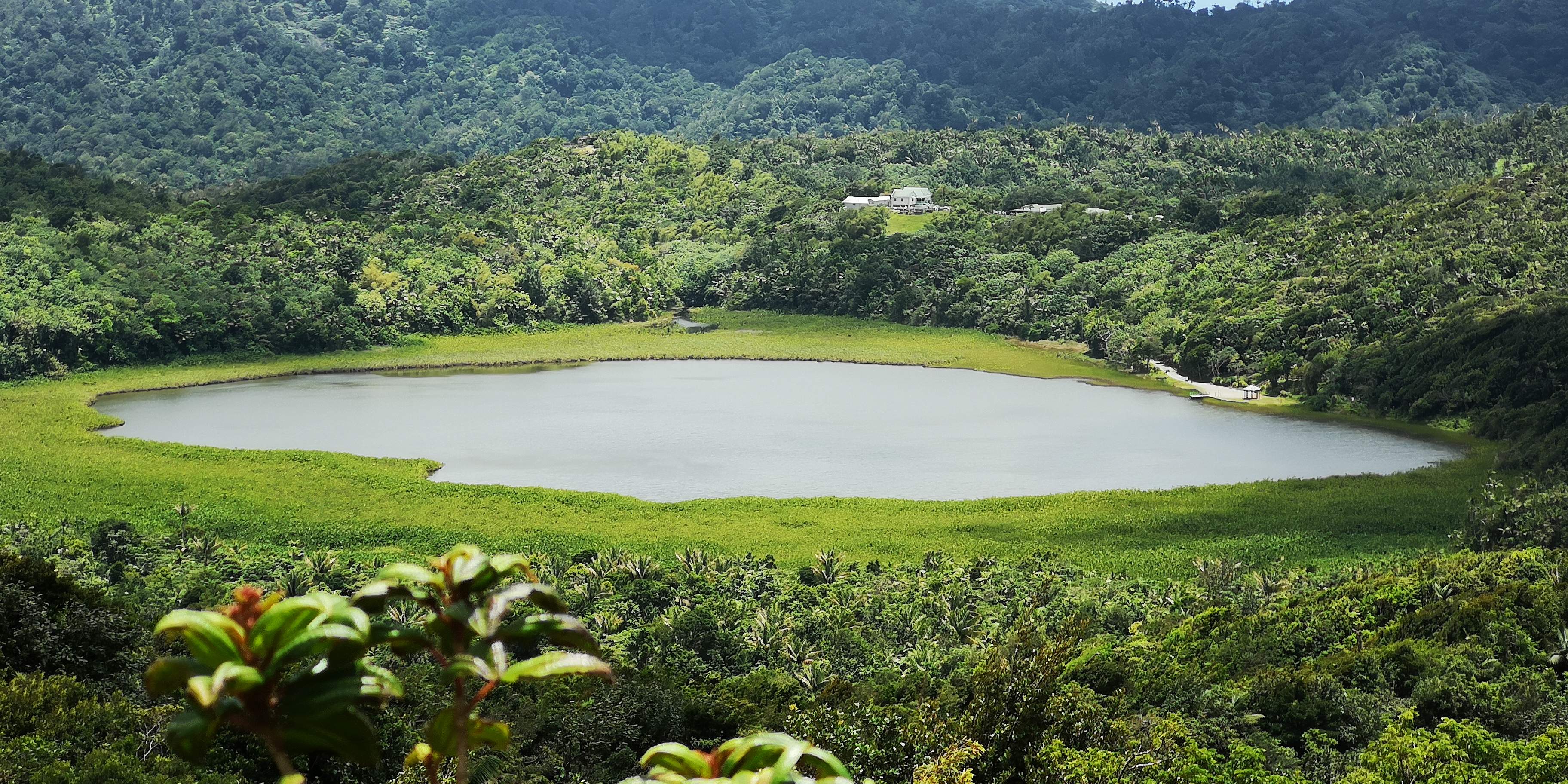 Mit dem Minibus erreichen wir auch den Grand Etang, den größten Süßwassersee auf Grenada. Der Zutritt kostet und führt zunächst zu touristischer Infrastruktur, die man sich an Tagen mit Cruiseship mit vielen Menschen teilt. Wer wie wir direkt zum See geht, lässt die Massen aber schnell hinter sich. Auf unserer Wanderung vom See auf den Mount Quaqua begegnet uns eine Wanderin. Die anschließende Wanderroute zu den Concord Falls haben wir für uns allein.