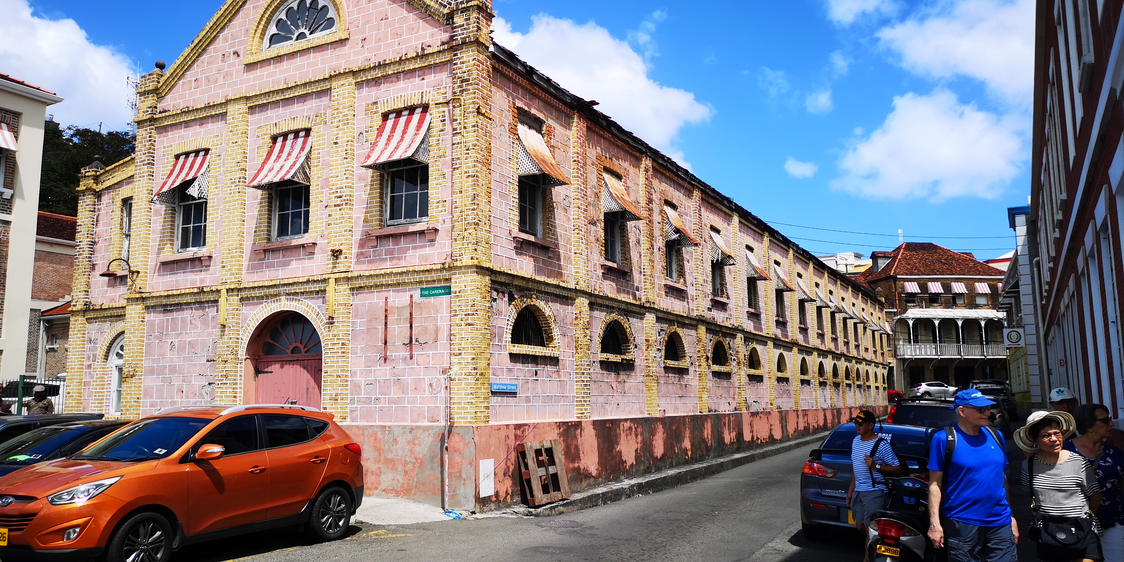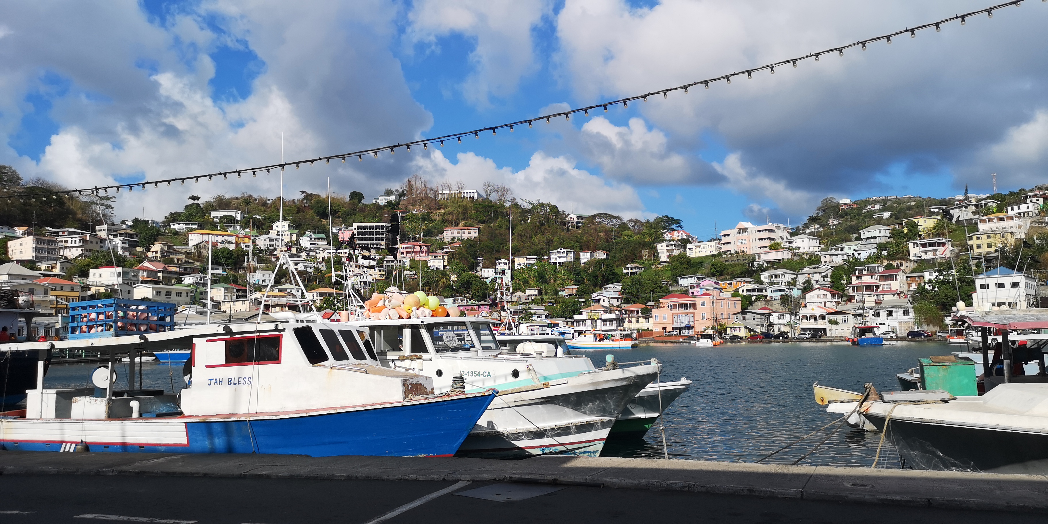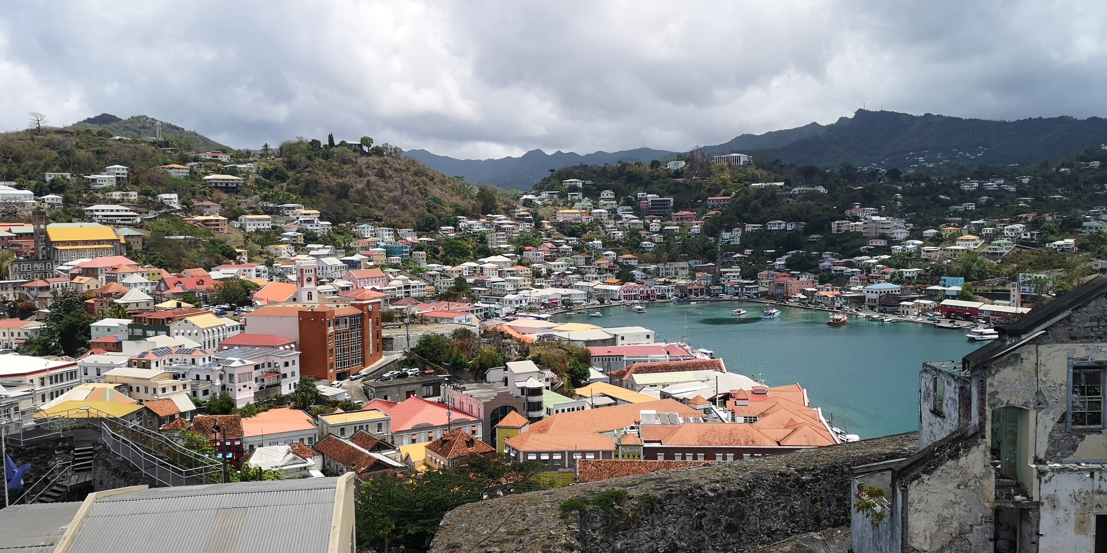 Grenadas Hauptstadt St George’s hat mit der „Carenage“ eine schöne Uferbebauung. Historische Gebäude, heute zumeist für Ministerien genutzt, geben ein pittoreskes Stadtbild. Die Stadt dahinter hat allerdings wenig Atmosphäre. Das große Kreuzfahrtdock hinter der Stadt beliefert die Insel regelmäßig mit Touristen, die dann in gecharterten Ausflugsbussen über die Insel hoppen. Ein Tunnel führt vom Terminal in die Stadt für die, die nicht die Hügel rauf und runter laufen wollen. Autos und Fußgänger teilen sich eine schmale Röhre, bei uns undenkbar.