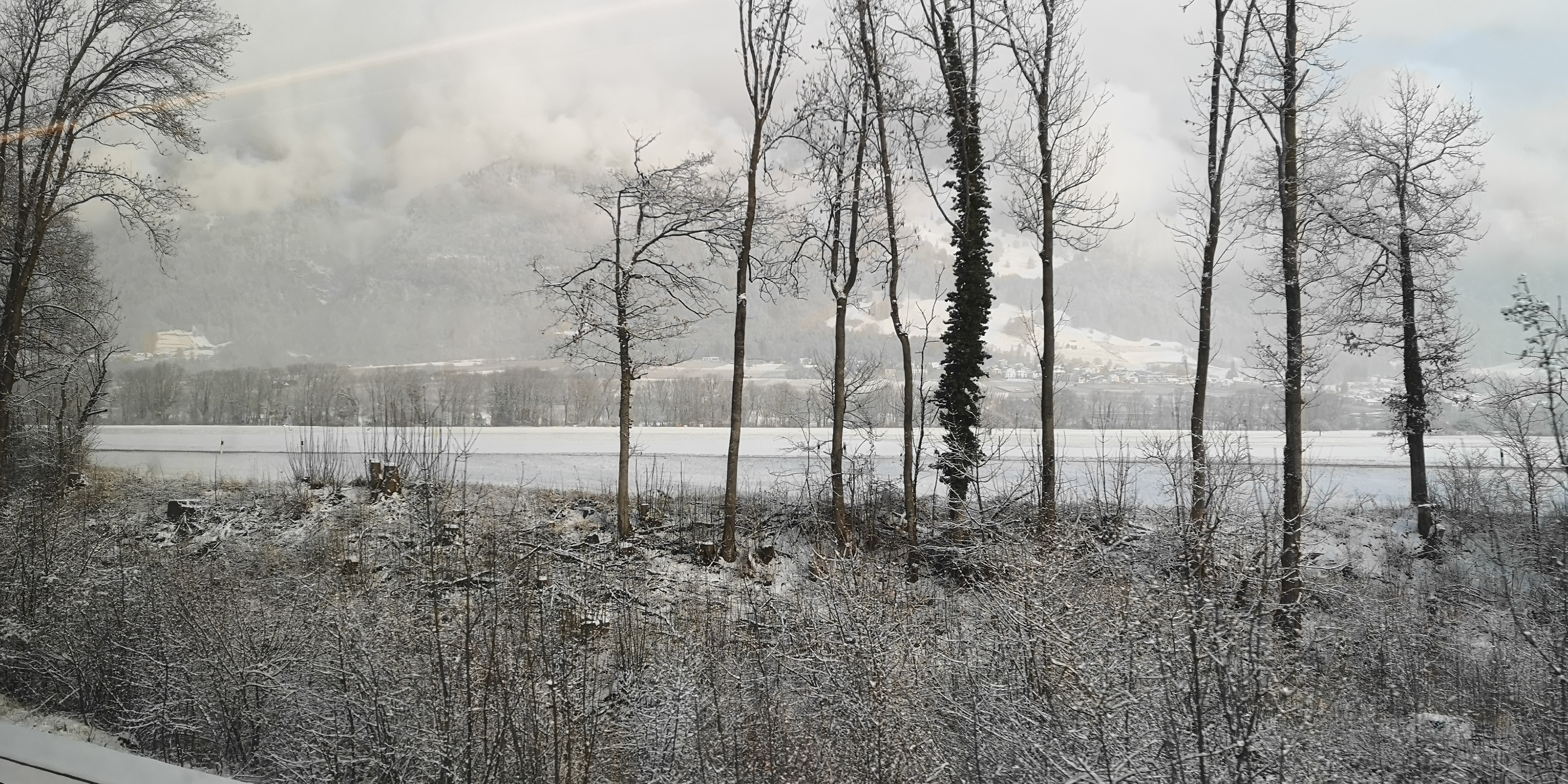 Die verschneite Schweizer Bergwelt zu verlassen, wird nicht so einfach: Kurz vorher hat der Fahrplan des örtlichen Sportbus gewechselt, was wir übersehen. Wir verpassen so den Postbus nach Chur, zu dessen Haltestelle uns der Sportbus hätte fahren sollen. Schnell ein Taxi bestellt – denn wir wollen den letzten ICE erwischen, der uns von Chur ohne x-maliges Umsteigen nach Frankfurt bringt. Das Taxi – kommt und kommt und kommt nicht. Auf gut Glück nehmen wir den nächsten Postbus, der uns bei planmässiger Ankunft noch 5 Minuten Zeit zum Umsteigen in den ICE lässt. Natürlich muss ausgerechnet jetzt an fast jeder Haltestelle jemand ein- oder aussteigen, ein Billet beim Fahrer lösen etc. etc. Bis zu 7 Minuten Verspätung haben wir kurz vor Chur. Grmpff!! Doch es geht alles glatt, wir erwischen den Zug. Mit all unserem Gepäck.