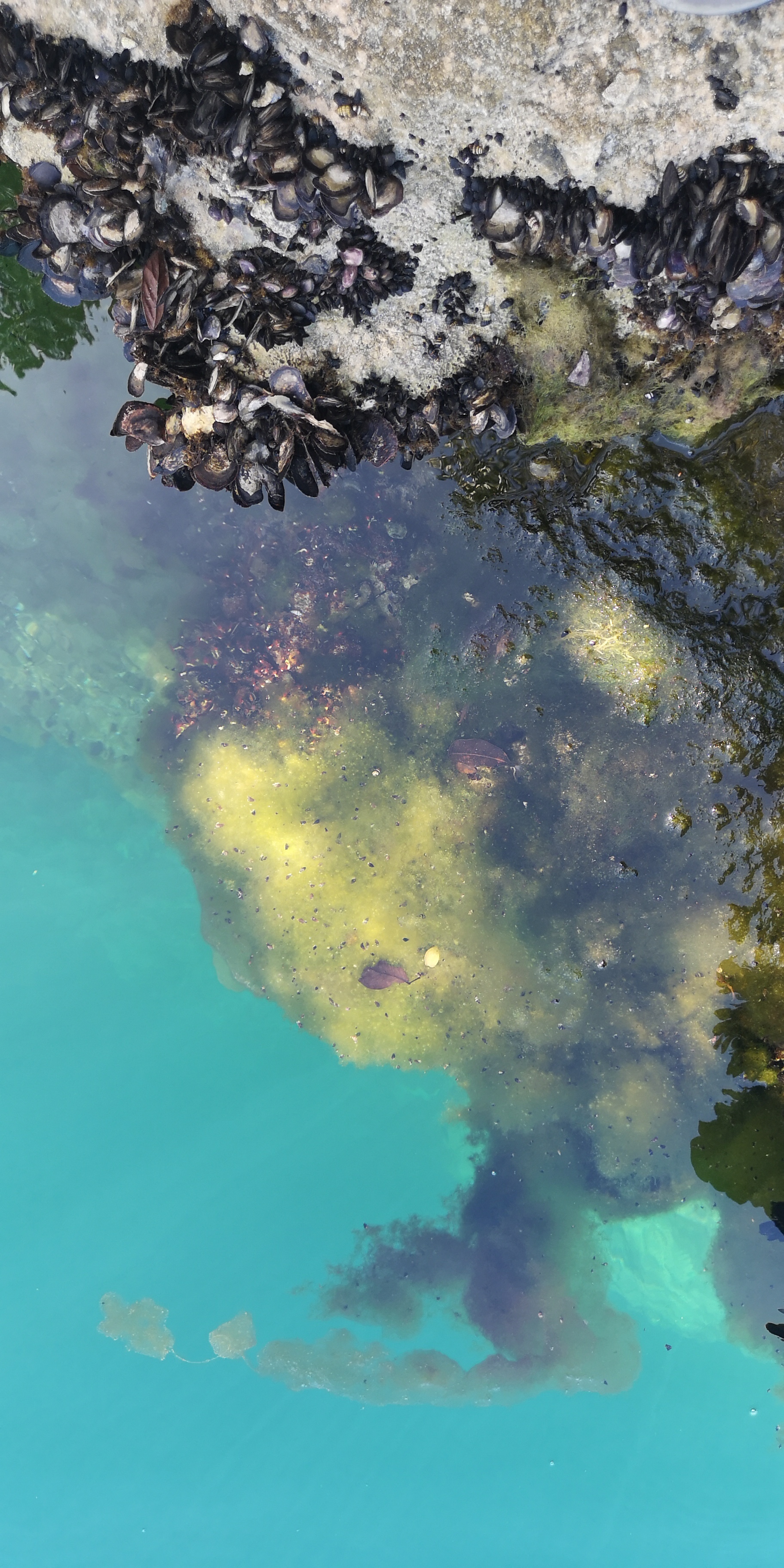 Algen und Muscheln im Wasser