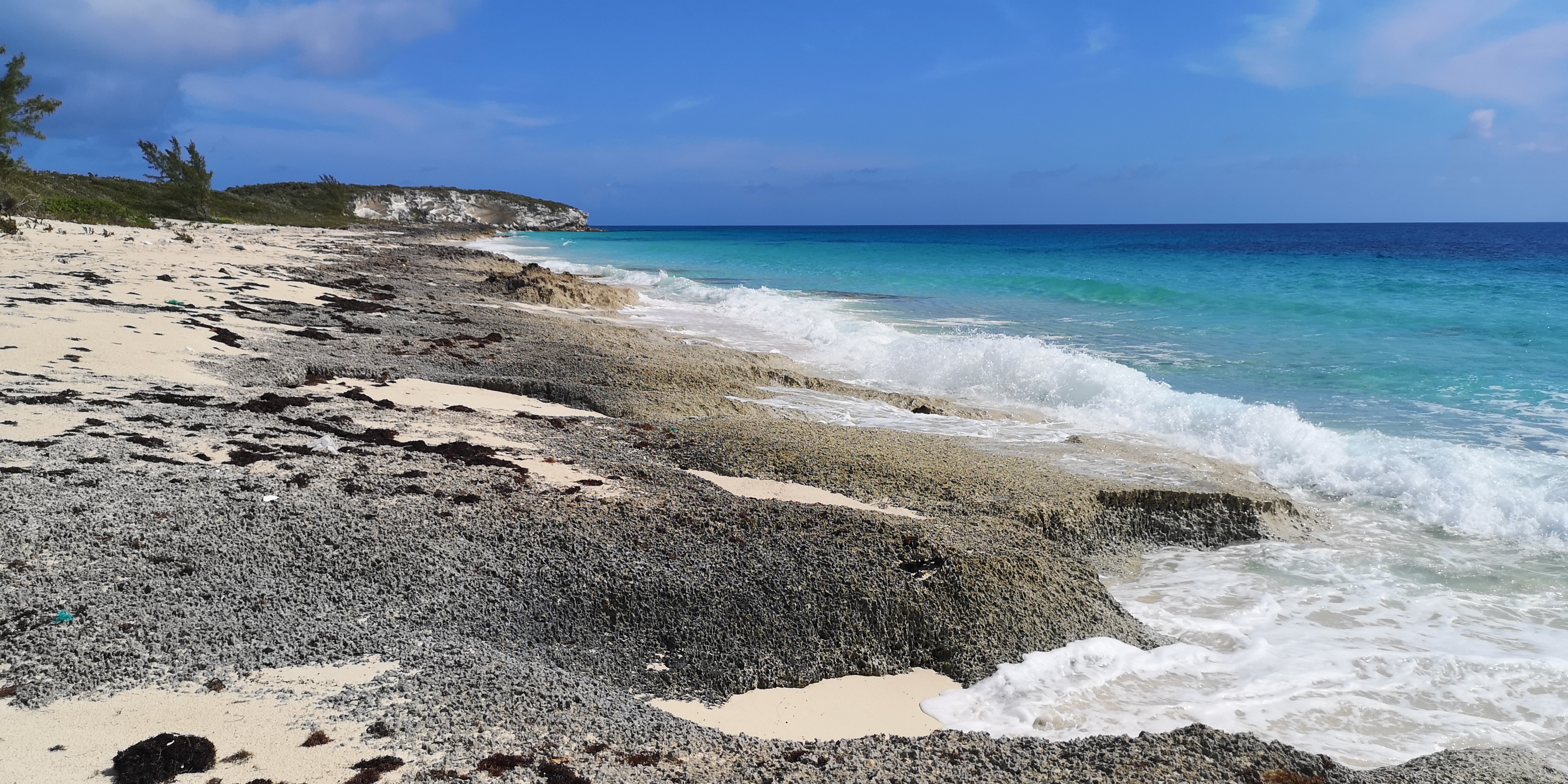 Vom vierten Strand – wieder gezählt ab Saddleback Cay – startet ein Trail auf die Windwardseite der Hoffman’s Cay.