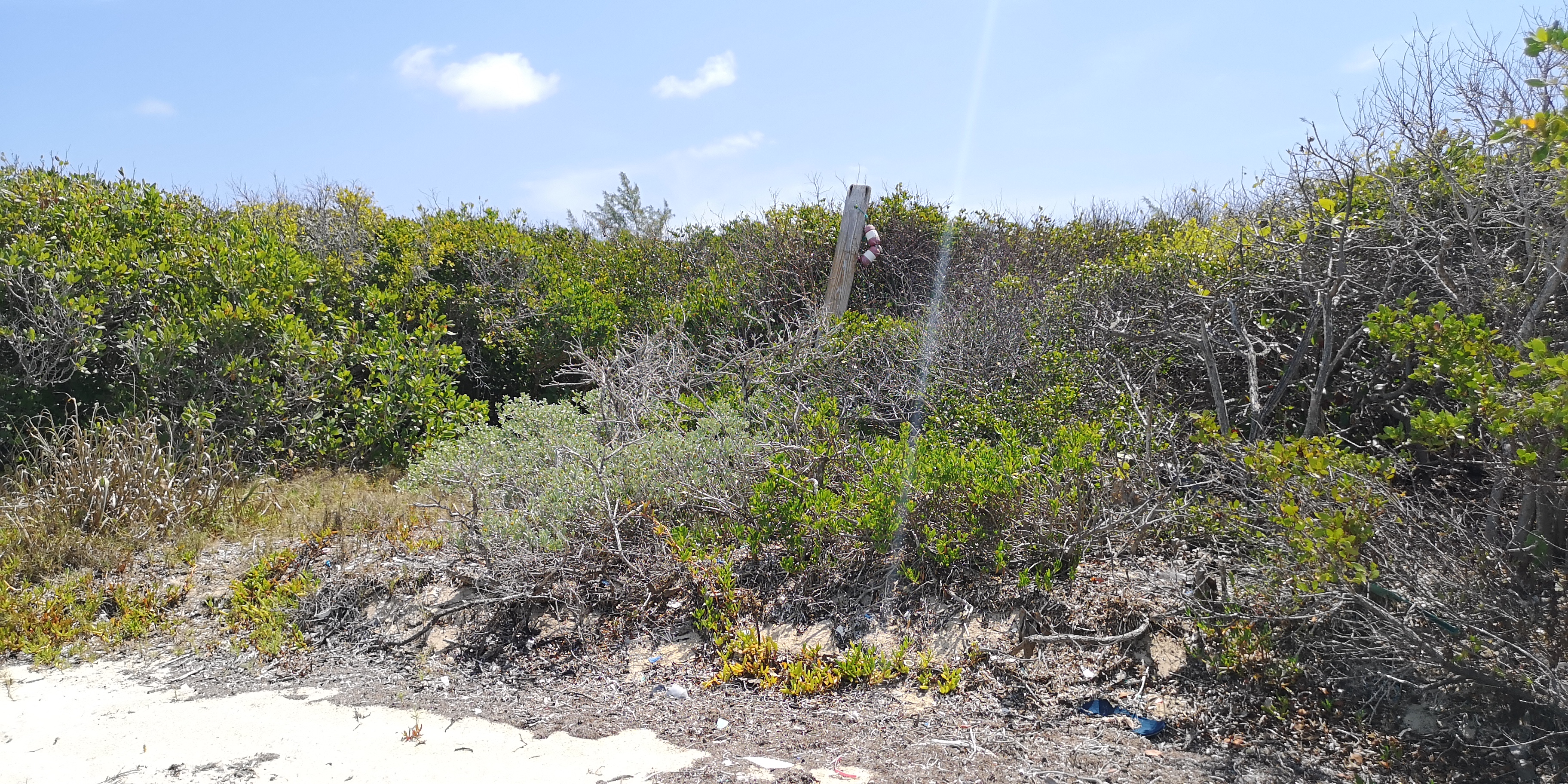 Trailmarker. Treibgut wird oft dazu verwendet, um die Wege zu markieren. Es sind Segler, wie wir auch, die dafür sorgen dass die Wege nicht völlig verwuchern. Für die Zukunft werde ich mir eine Machete besorgen und mitführen. Nur wenn alle mithelfen, kann es so bleiben