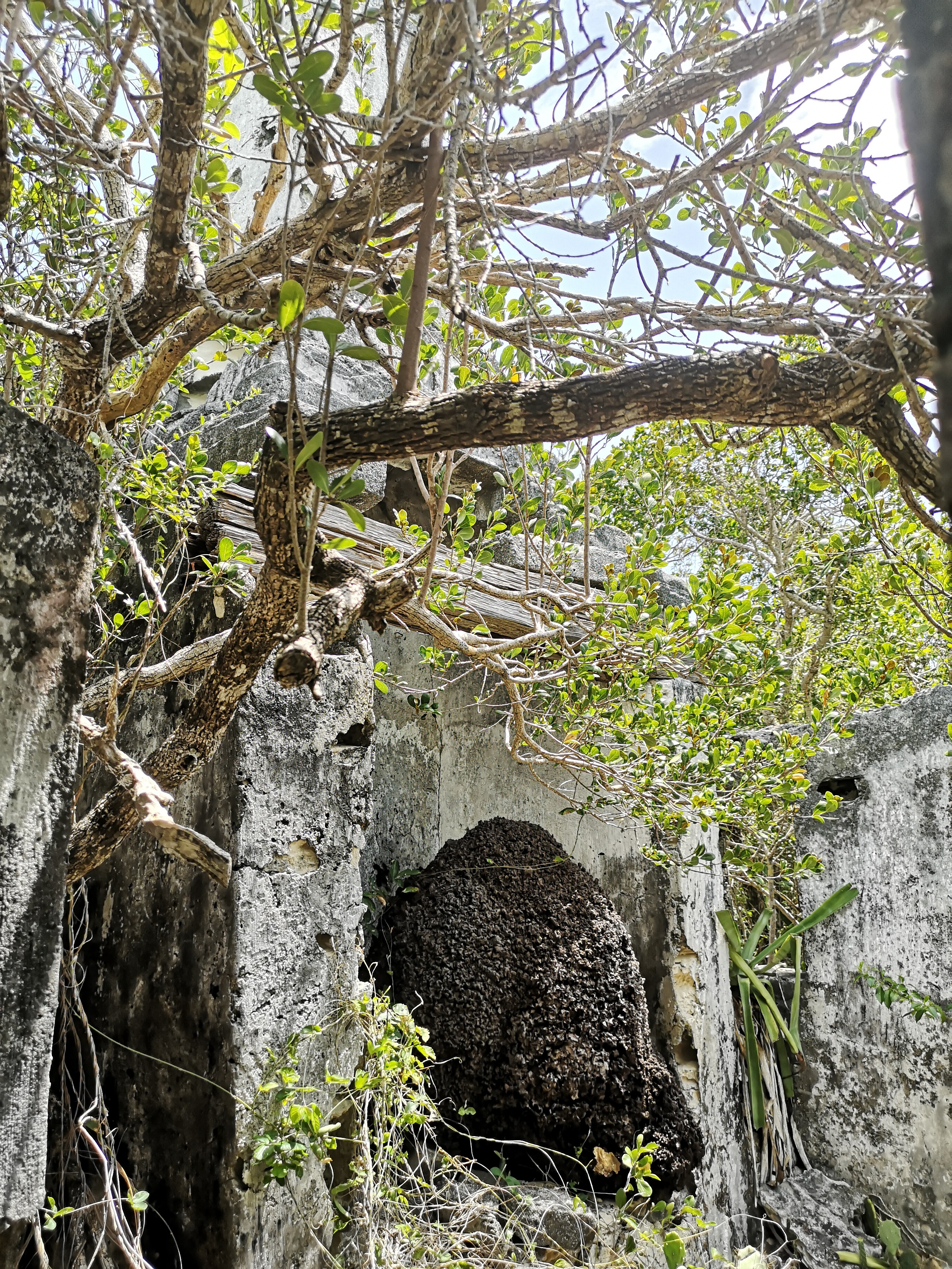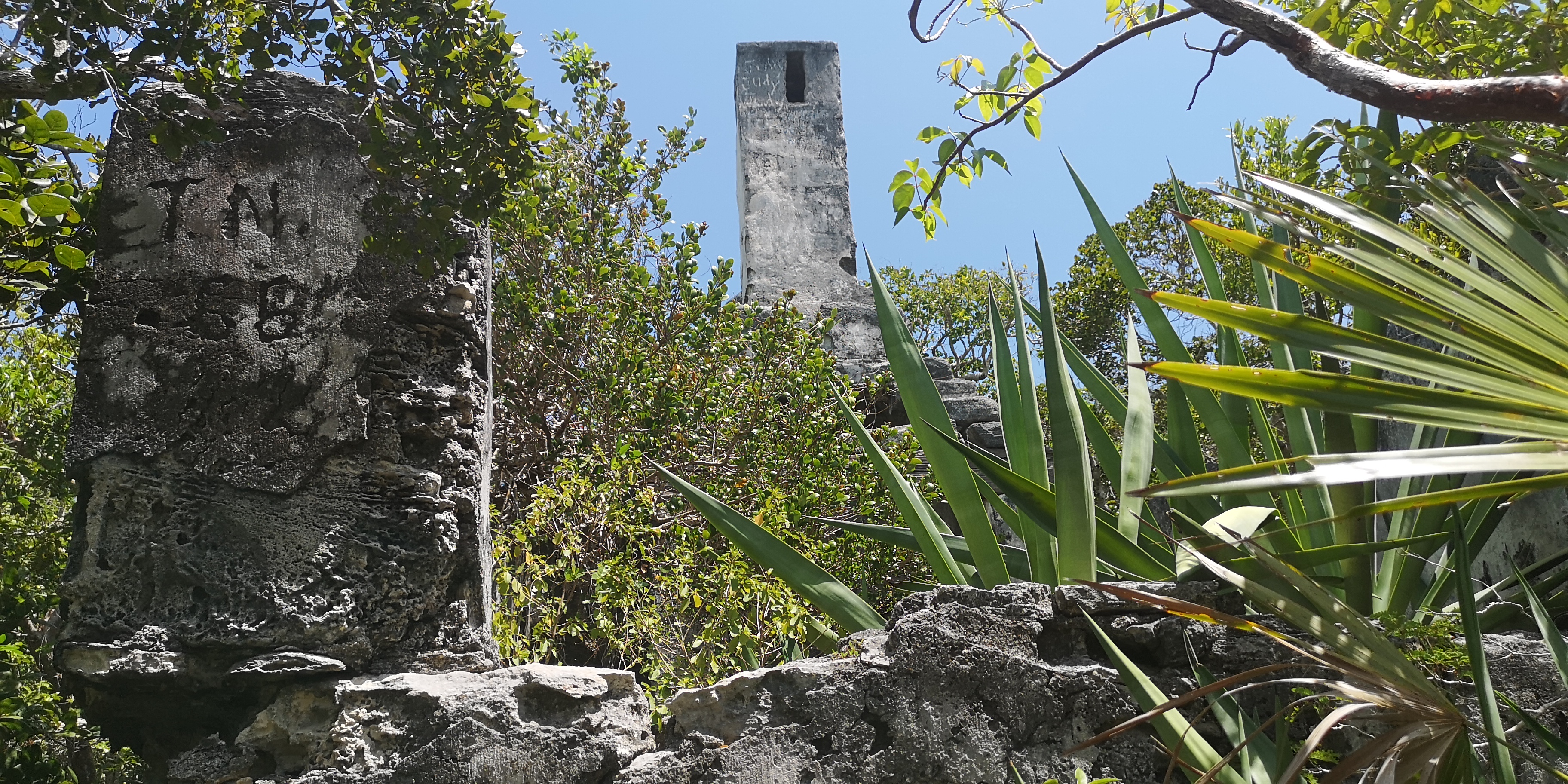 Und zu Ruinen von Bauwerken vergangener Zeiten. Ein Gebäude mit hohem Schornstein. Was es damit auf sich hat? Vielleicht brannte man hier früher aus Zuckerrohr Rum? Wir wissen es nicht und finden auch nichts im Internet dazu.