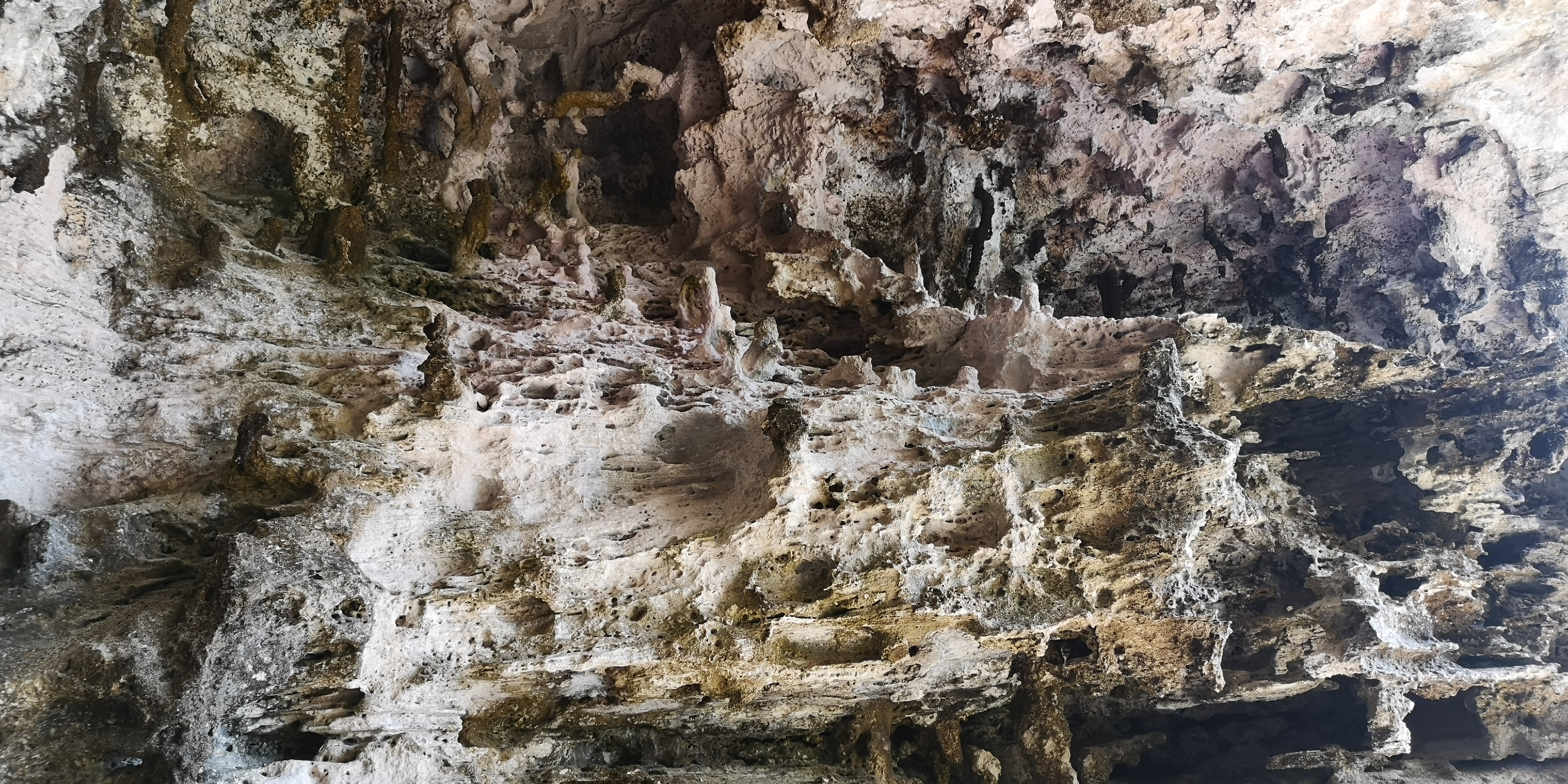 Die Felsküste ist zerklüftet mit Höhlen und Felsformationen, die wie Skulpturen aussehen
