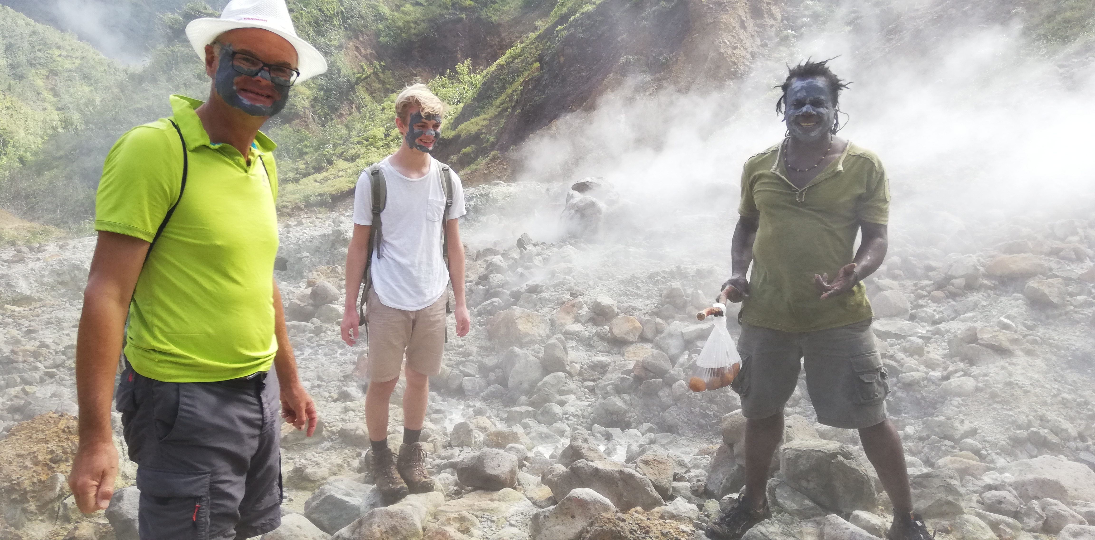 Titou Gorge-Schlucht von obenDer Trail zum boiling lakeDer Trail zum boiling lakeDer Trail zum boiling lakeMit ner Liane kommt man besser über den AbgrundDer Trail zum boiling lakeDer Trail zum boiling lakeDie Dampfschwaden des boiling lake kommen in SichtIm Desolation ValleyIm Desolation ValleyIm Desolation ValleyIm Desolation ValleyIm Desolation ValleySchlammaske. Soll verjüngend wirken…..Schlammaske. Soll verjüngend wirken…..Im Heisswasser gekochte Eier als ZwischensnackIm Heisswasser gekochte Eier als ZwischensnackIm Heisswasser gekochte Eier als ZwischensnackSohn & captain nehmen noch ein SchwefeldampfbadKlettereiennach 3 1/2h am Ziel: Der boiling lake kocht wirklich. 100 Grad Wassertemperatur!nach 3 1/2h am Ziel: Der boiling lake kocht wirklich. 100 Grad Wassertemperatur!