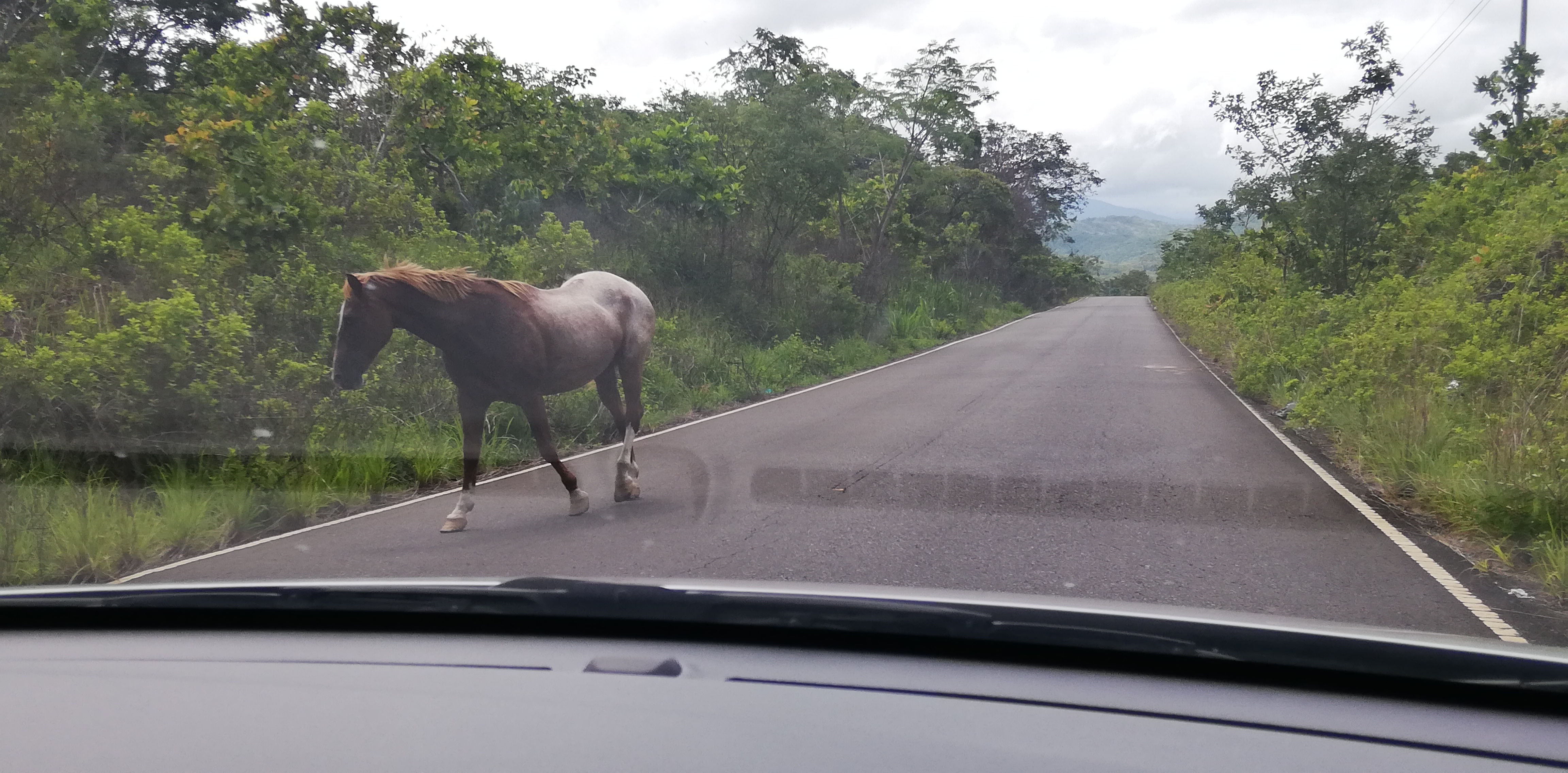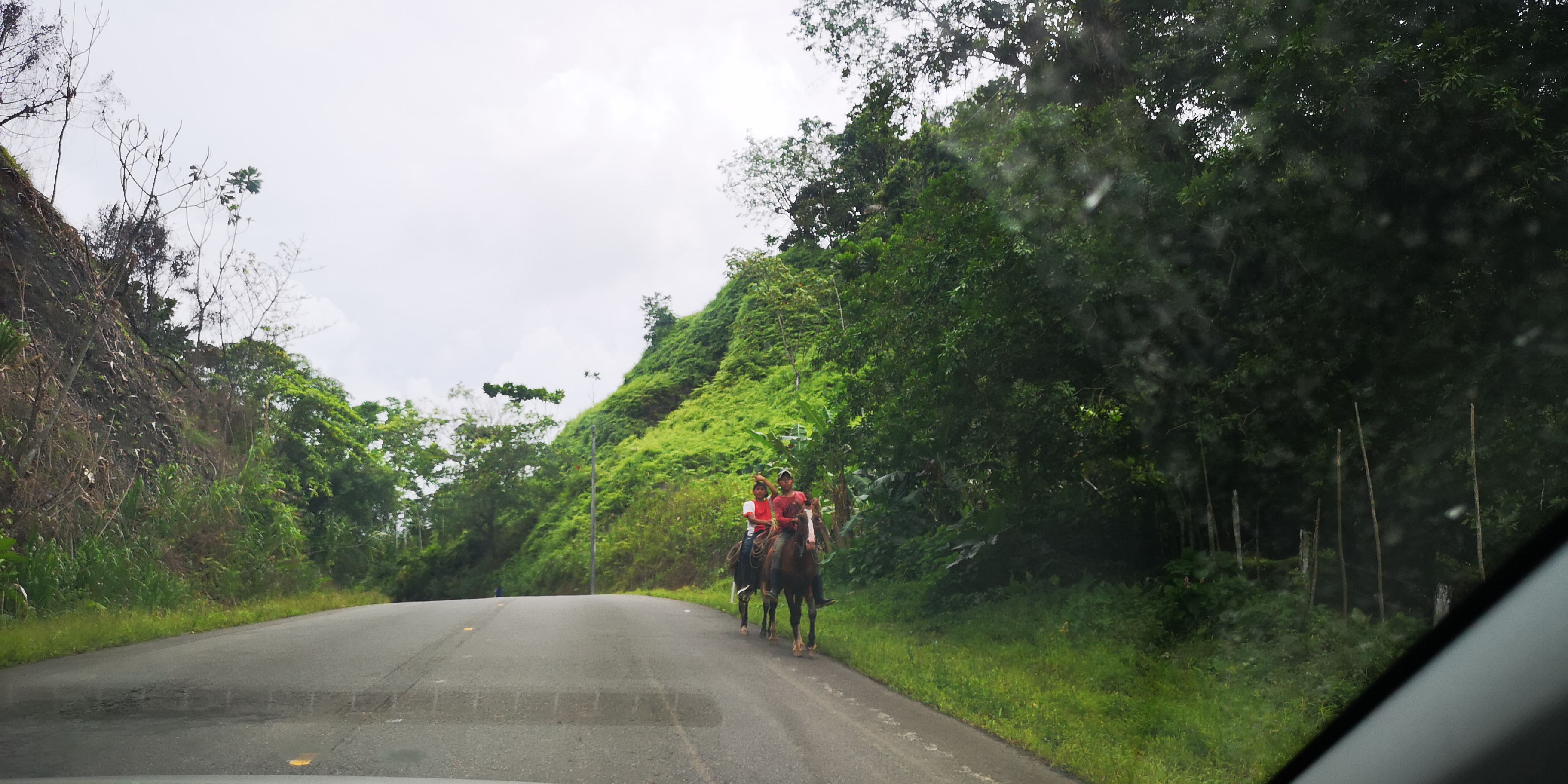 Von Boquete aus fahren wir Richtung Atlantikküste in die Gegend von Gualaca Provinz Bocas und zurück. Groß sind nicht nur die Temperaturunterschiede. Eine Infrastruktur wie in Boquete gibt es jedenfalls bis zum sehr einfachen Ort Miramar an der Küste nicht. Auf den Straßen ist aktives Fahren angesagt. Dh man muss immer mit tiefen Schlaglöchern rechnen und entsprechend ausweichen. Und mit Tieren auf der Straße muss man auch rechnen. Gut wenn die, wie das Pferd in der Provinz Chiriqui, sich an die Verkehrsregeln halten und auf der rechten Fahrbahnhälfte bleiben.