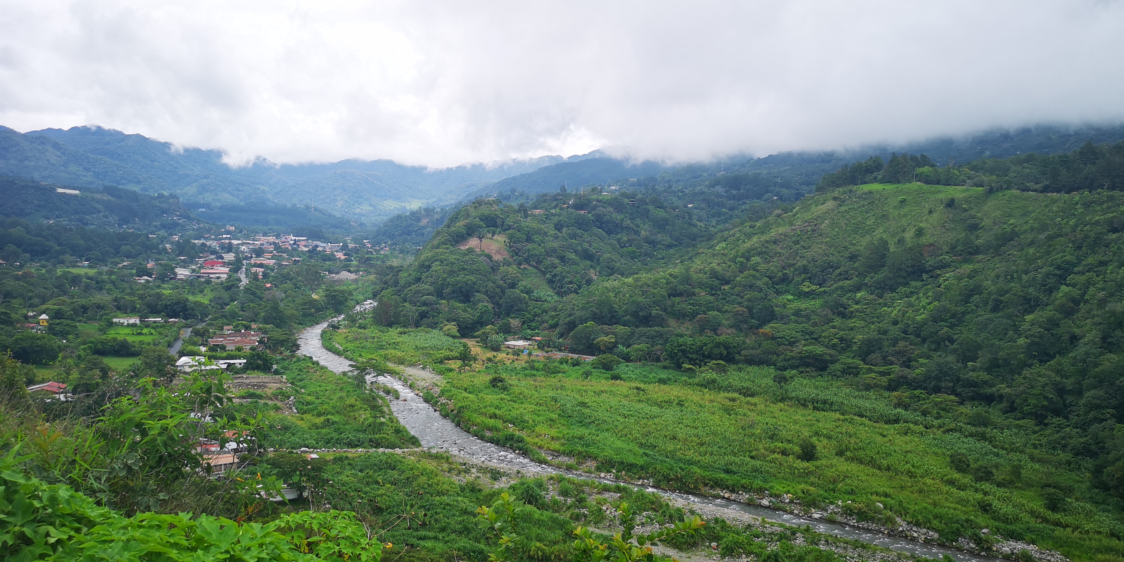 Feuchtwarmdampfig ist es in den Berggegenden rund um Gualaca, die weniger hoch als Boquete liegen. Die Feuchtigkeit zieht an den Bergen hoch wie Nebelschwaden.
