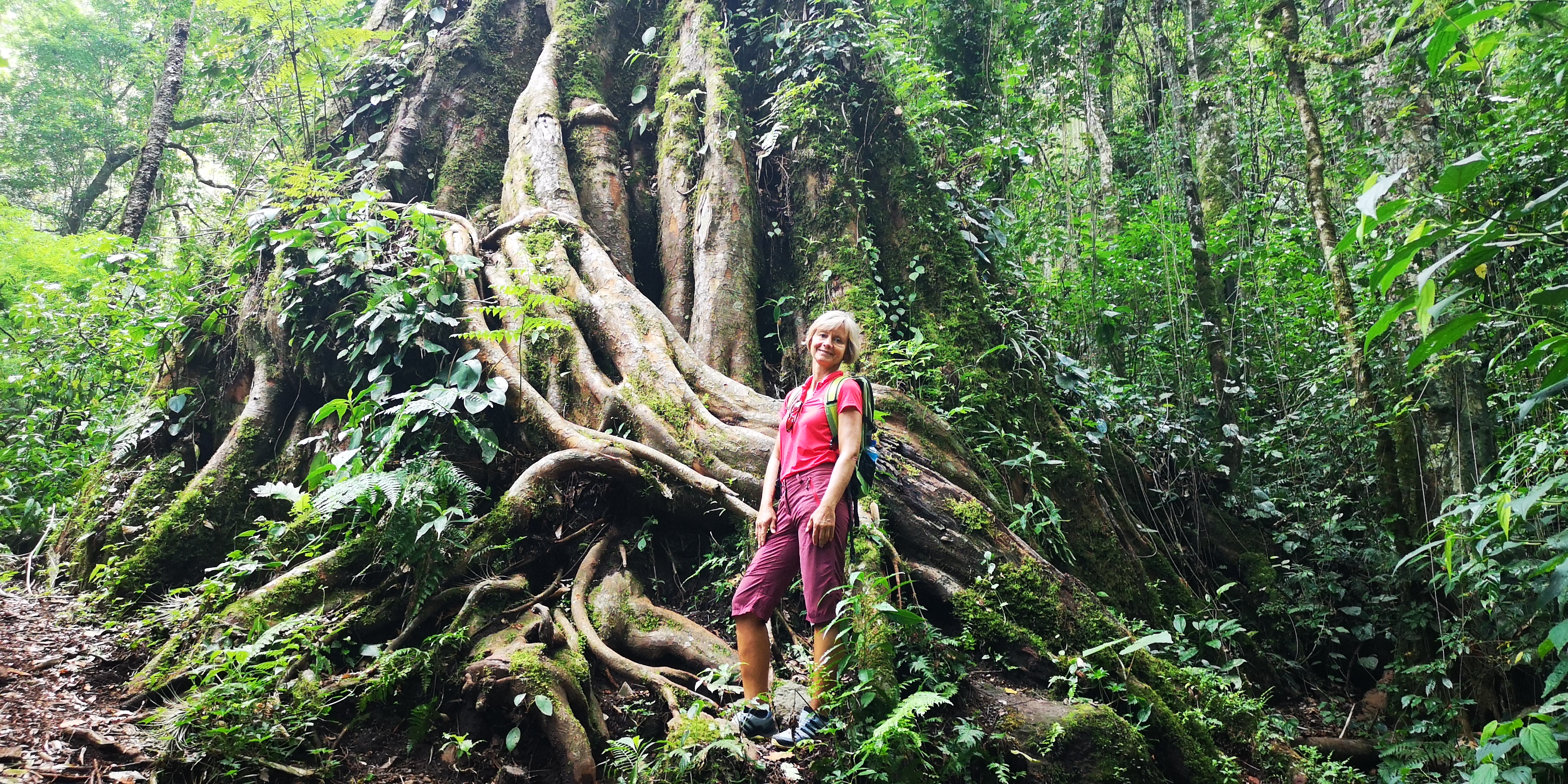 Wunderschöne Landschaft und tolle Tierwelt umgibt uns. Ein über 1000jähriger Baum fasziniert mit Wurzeln und Stamm.