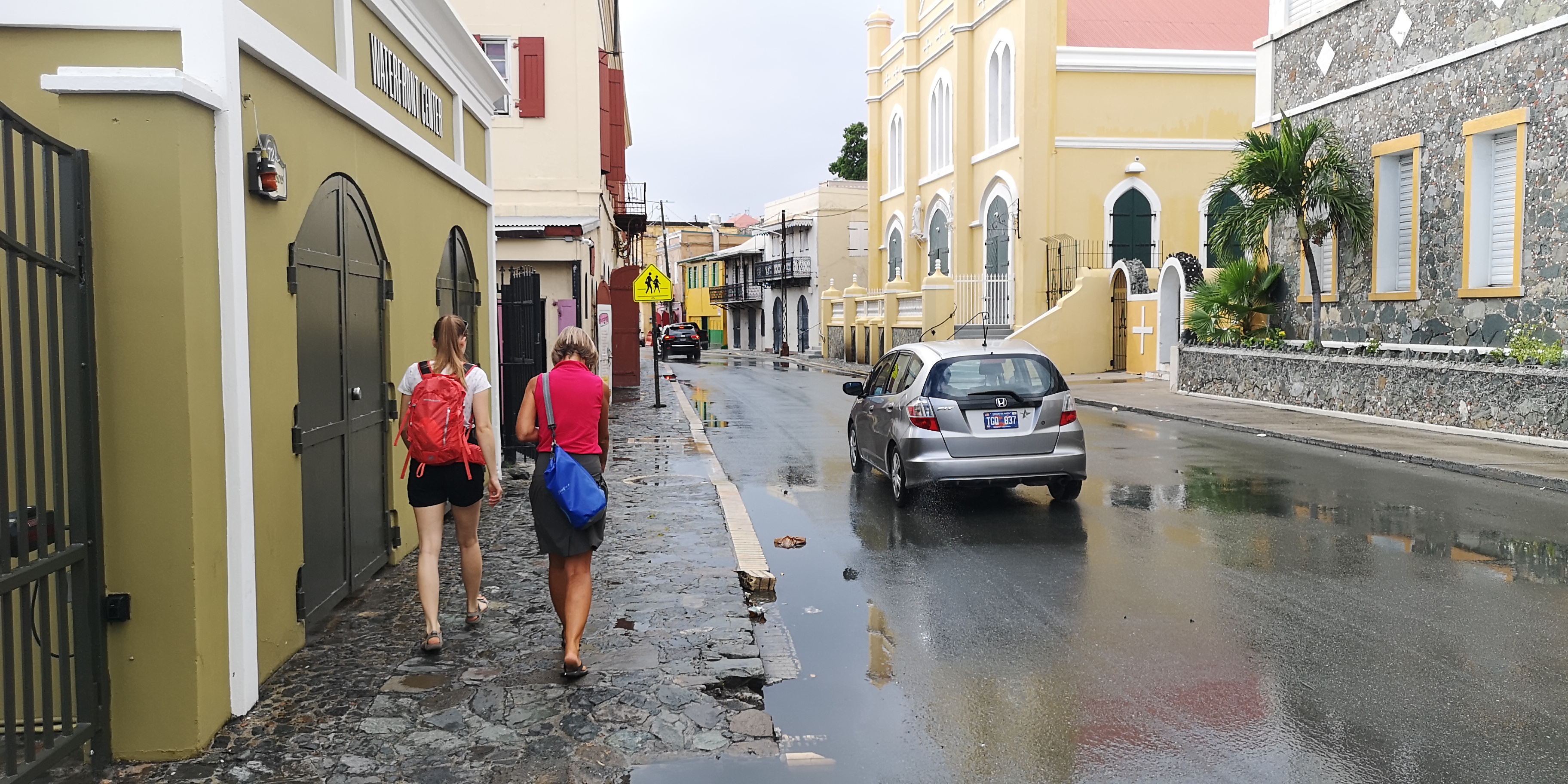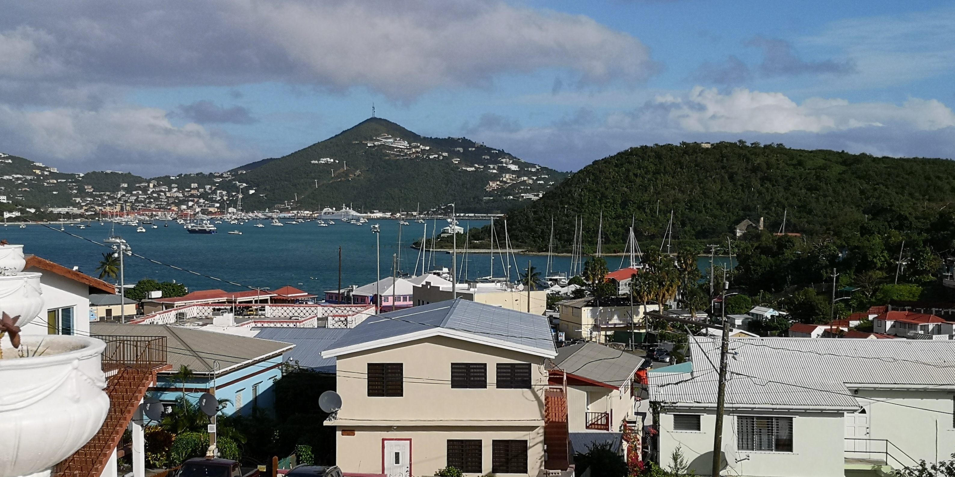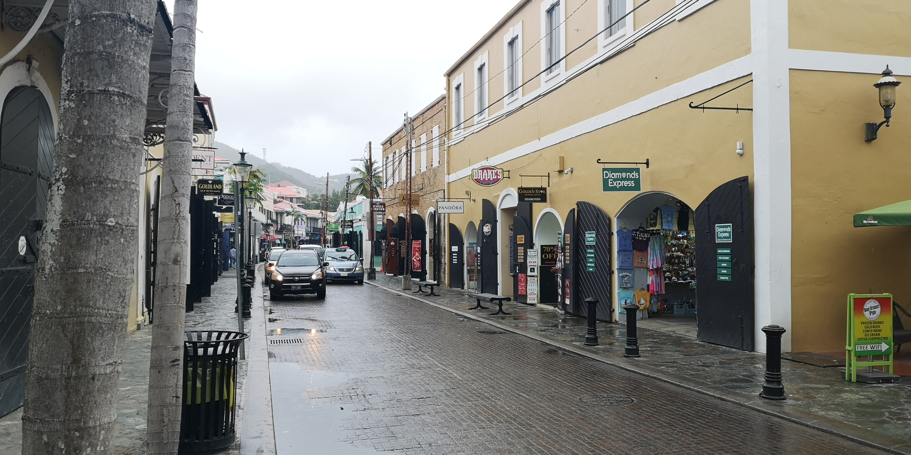 Von St John gehen wir weiter zur Hauptinsel St Thomas. Unsere Tochter in Empfang nehmen, die just an dem Tag aus Zürich abflog, an dem Sohnemann wieder in Zürich ankommt. Ein gemeinsamer Termin mit beiden liess sich leider nicht finden, da beide an der Uni unterschiedliche Prüfungspläne hatten. Auch in St Thomas lässt uns der Regen nicht alleine. Die capitania strahlt dennoch. Denn es gibt ein Paradies für sie in Charlotte Amalie : Die Fruit Bowl, einen Laden voller Obst und Gemüse, zudem Feinkost. Gut erreichbar per Dinghy zum Yacht Harbour Grand und dann weiter zu Fuß.