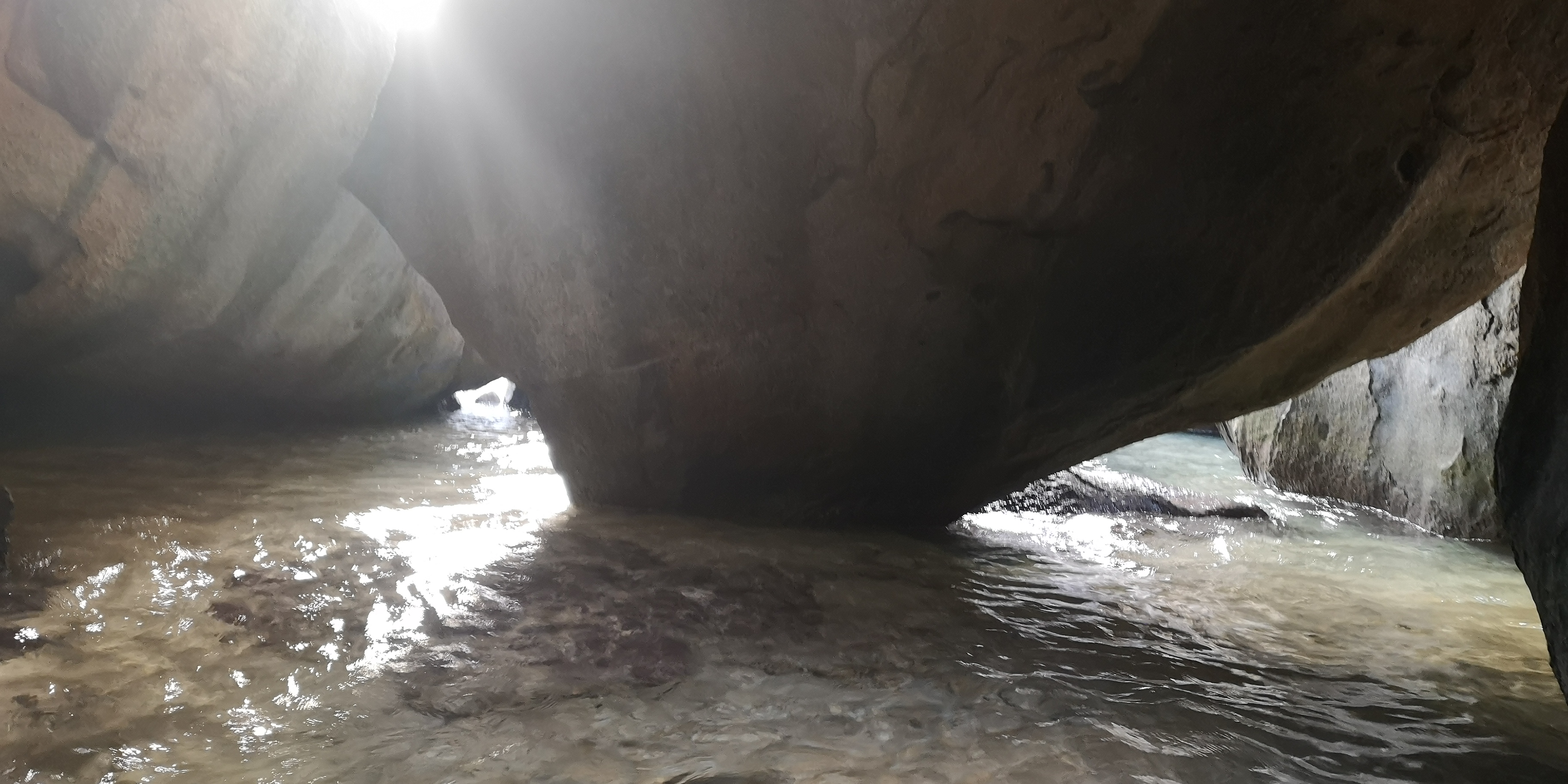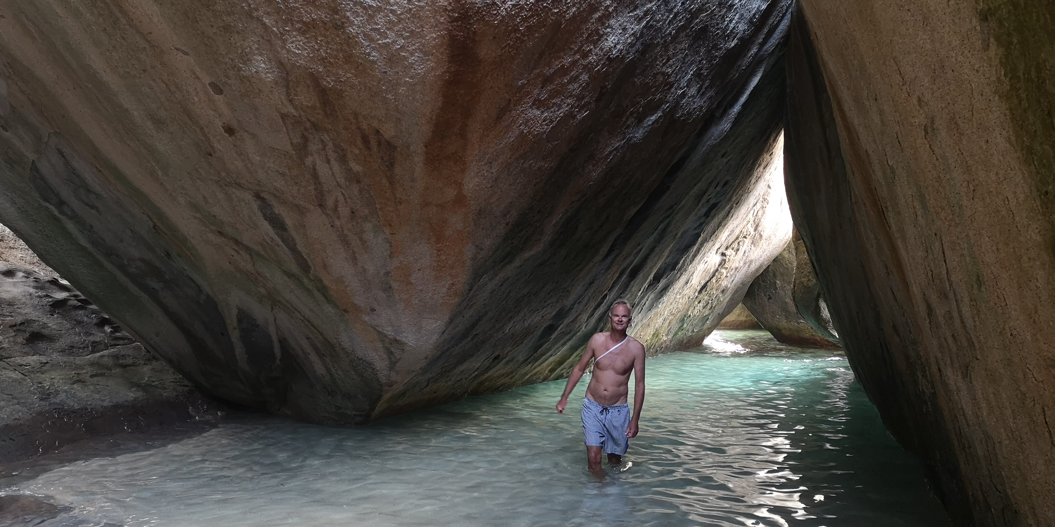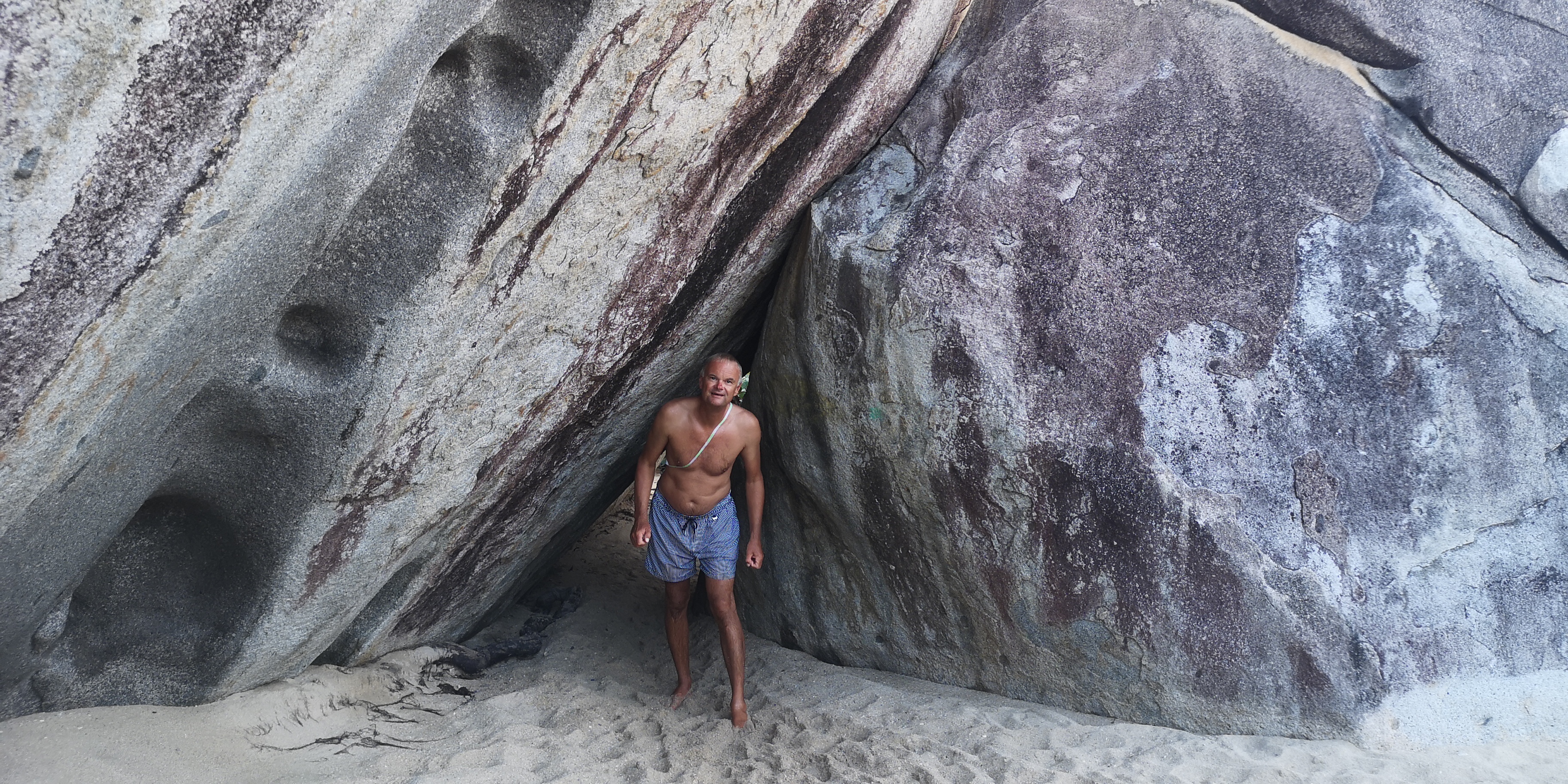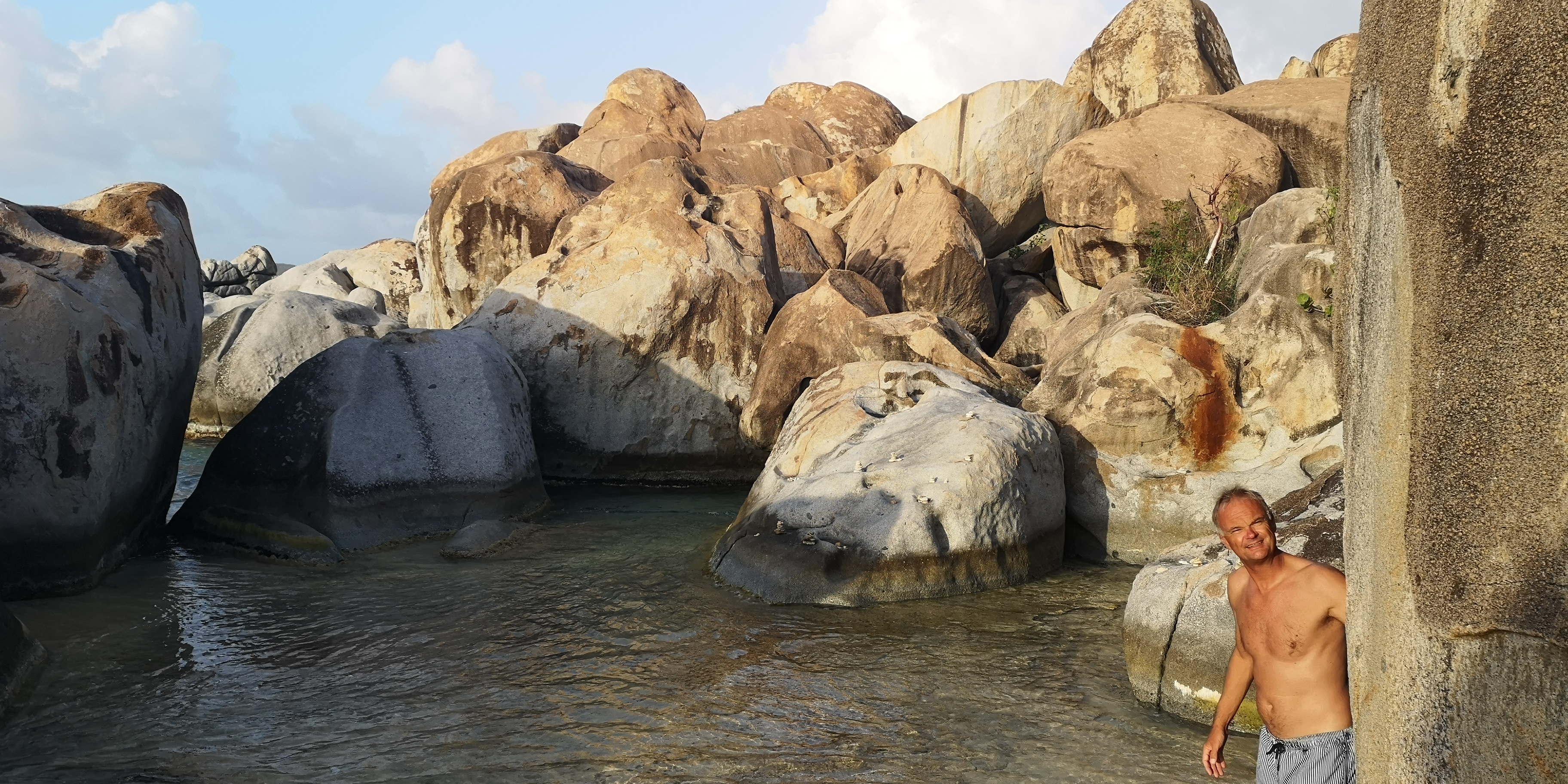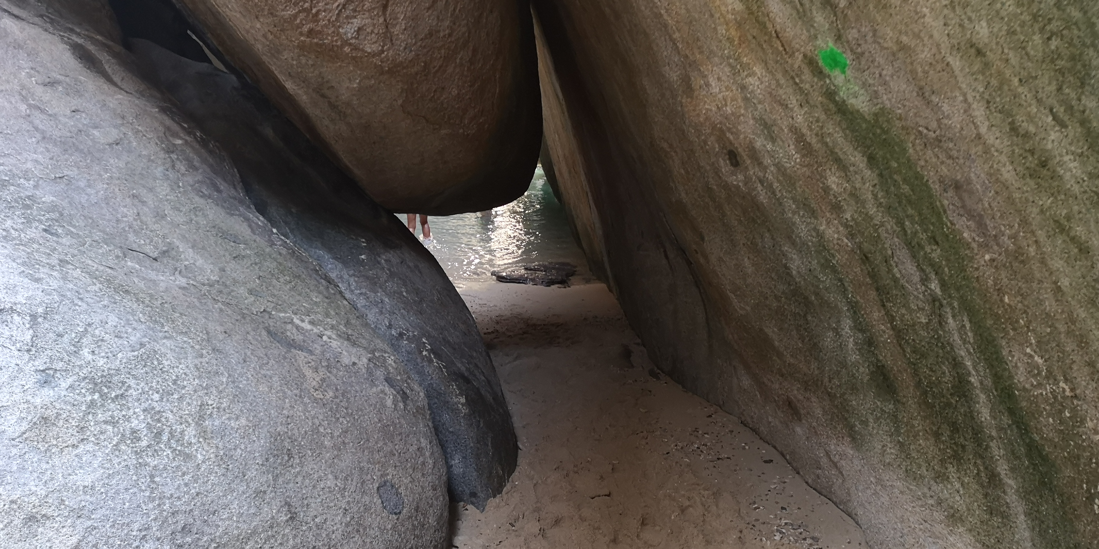 So legen wir uns einen kurzen Dinghy-Tripp neben den „The Baths“ – der Attraktion auf Virgin Goda schlechthin – über Nacht an einem Sandstrand vor Anker. Knapp ausserhalb des gesperrten Bereichs. Wir haben die wirklich traumhaften Buchten und die Attraktion abends für uns alleine. Kein Charterer, keiner der Tausenden von Kreuzfahrer, die täglich hierrüber herfallen, ist noch da.
