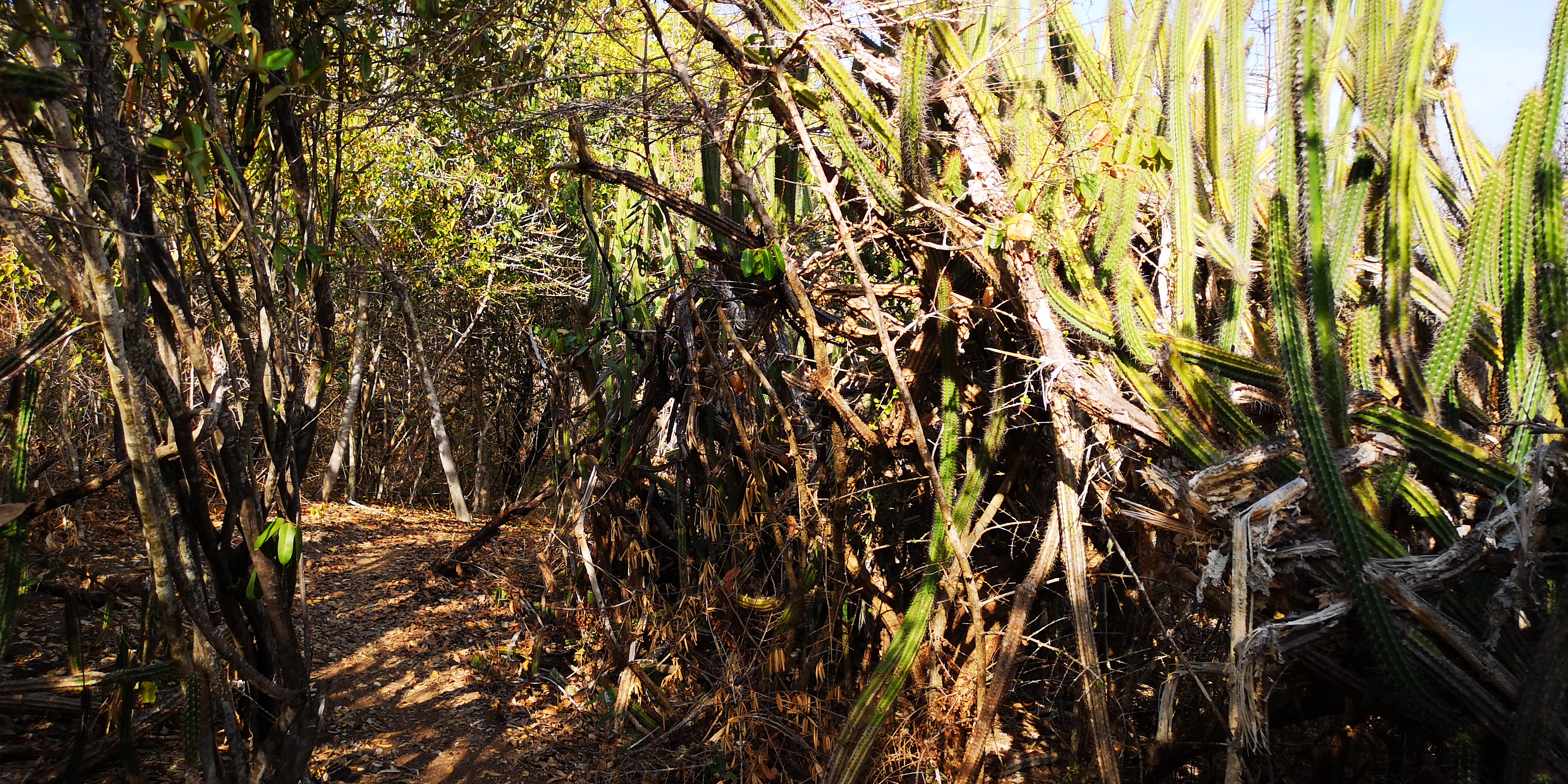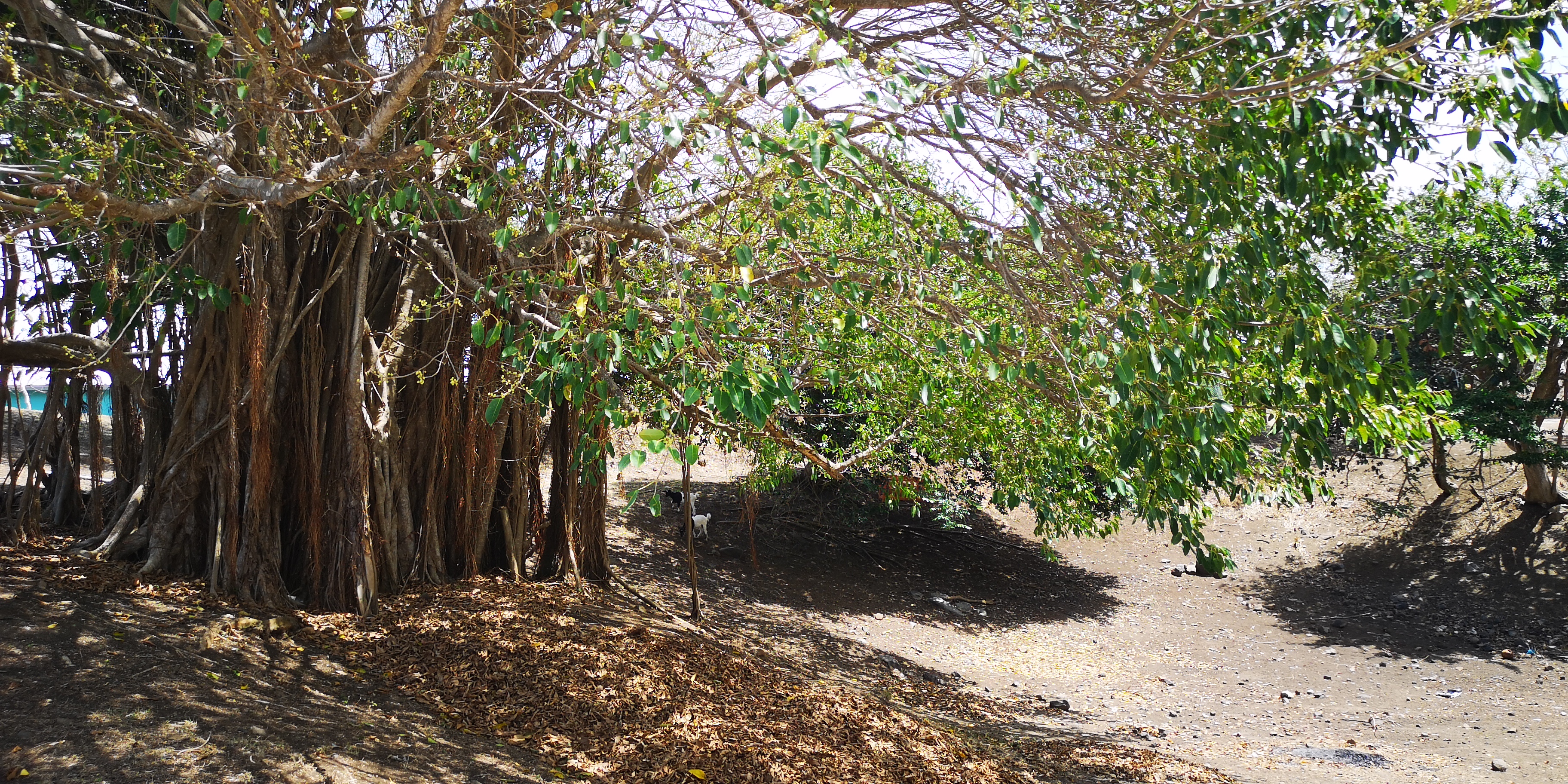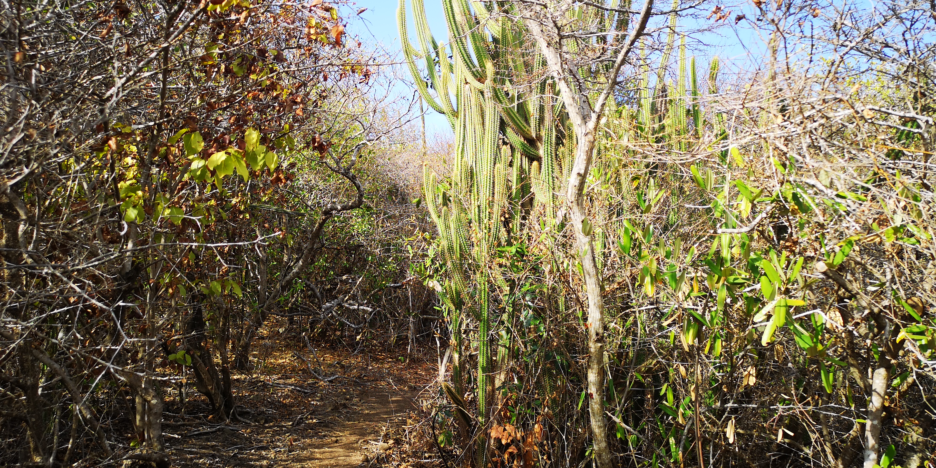 Schade ist, dass es keinen funktionierenden Dinghy-Steg mehr gibt. So muss man, will man trockenen Fußes anlanden, das Dinghy den Strand hoch ziehen. Mitsamt unserem (viel zu schweren weil 4-Takt) Aussenborder. Und dort natürlich irgendwie gegen Diebstahl sichern, denn wir wollen uns ein wenig die Insel erwandern. Die capitania biegt eine Palme zurecht, und ich lege unser Stahlseil darum, gesichert mit dem Vorhängeschloss. Passt!