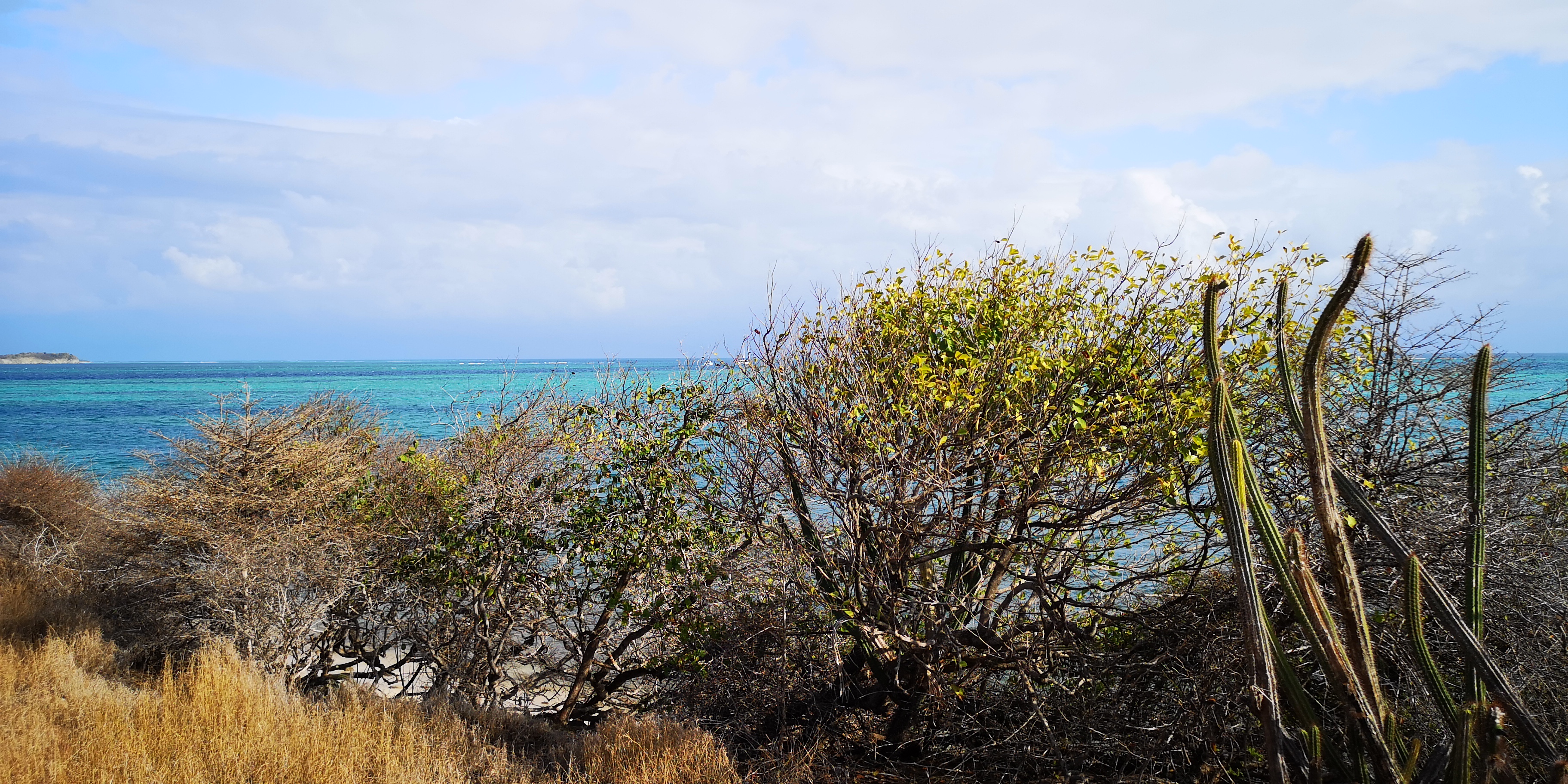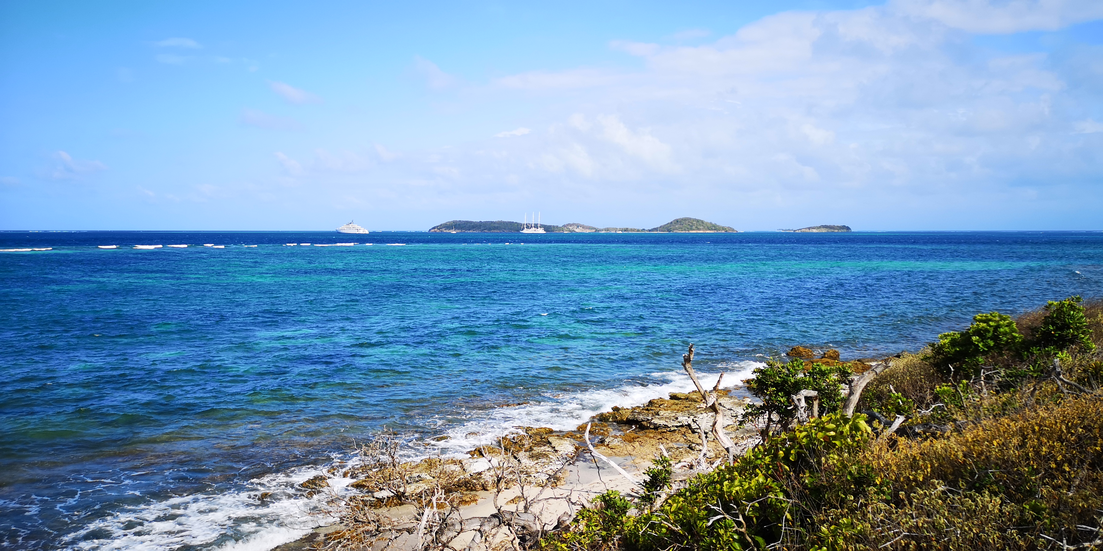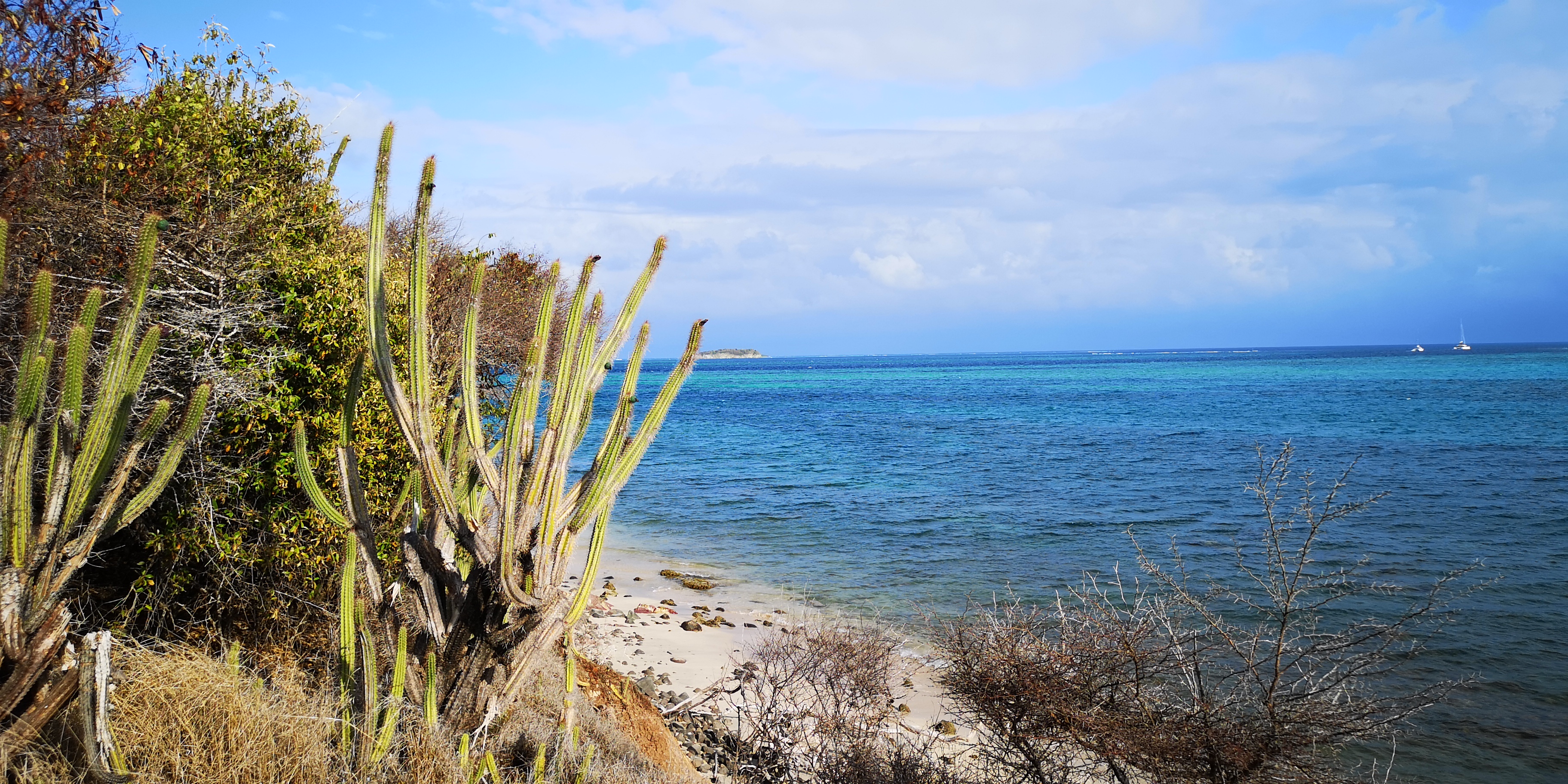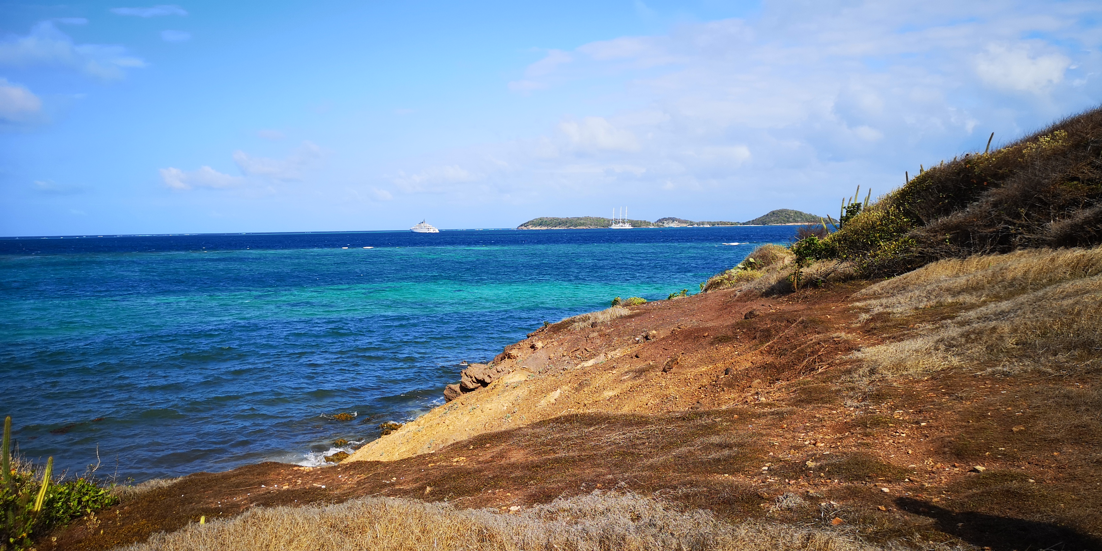 Von der Salt Whistle Bay aus führt ein schmaler Pfad entlang der Küste von Mayreau, immer mit Blick auf die Tobago Cays oder die Grenadinen.