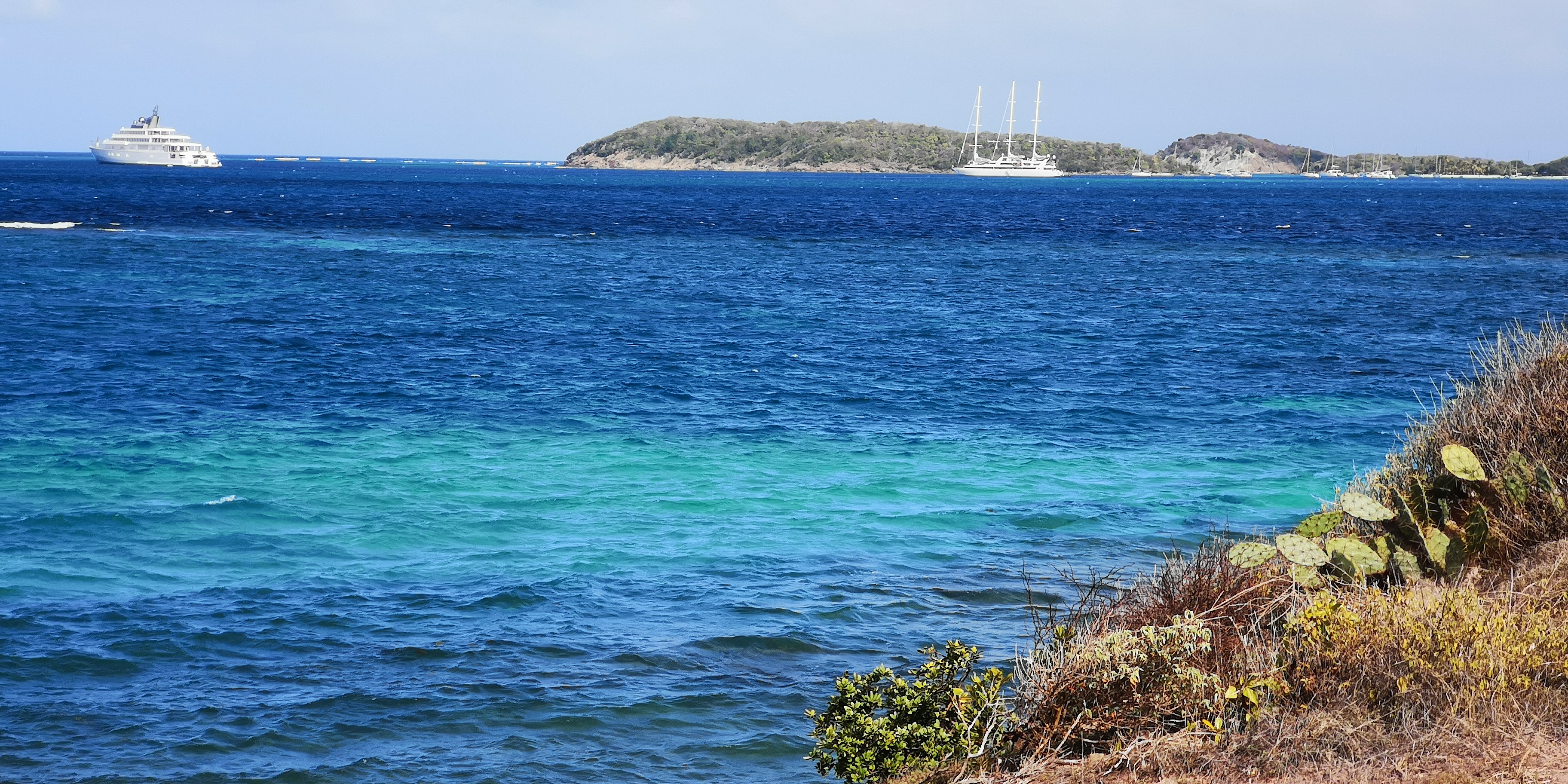 Von Canoun aus ging es zur nur 6 Seemeilen entfernten Salt Whistle Bay auf der Insel Mayreau. Türkises Wasser vor einem Sandstrand, hinter einer schmalen Landbrücke bereits wieder Meer und Ausblicke auf die Tobago Cays mit weiteren türkisen Buchten – kein Wunder, dass die Salt Whistle Bay als eine der schönsten der Karibik gilt.
