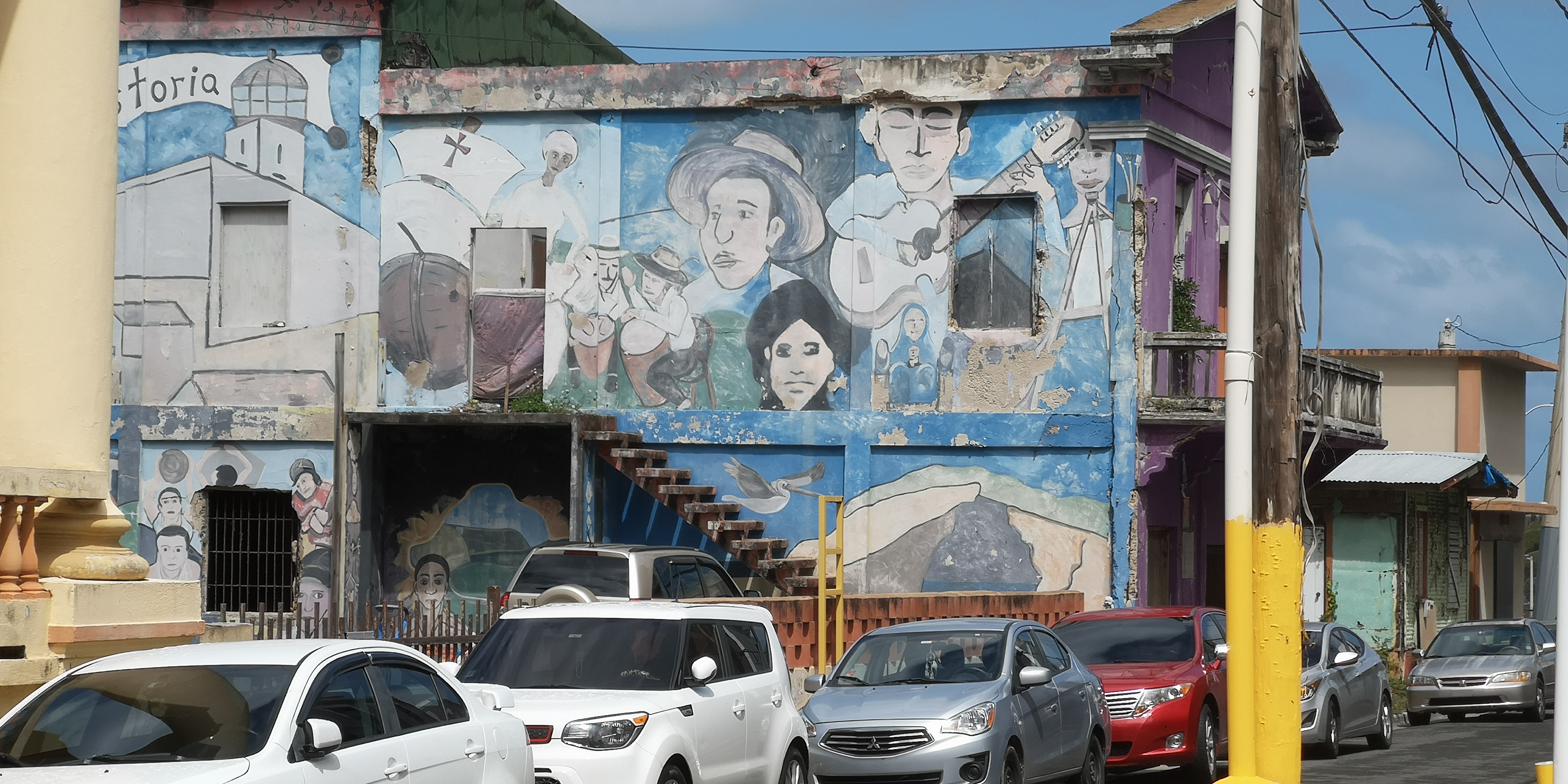 Am deutlichsten sehen wir den Verfall der spanischen Kolonialbauten in Arrecibo. Hier verfällt der Großteil. Der Ort wirkt allerdings auch insgesamt „ausblutend“. Müll stapelt sich am Rande eines ehemals schönen Platzes. Die Finanzverwaltung ist im Erdgeschoss eines Gebäudes an der Kolonialzeit angesiedelt, seit 2019, wie eine edle steinerne Tafel verkündet. Die beiden Stockwerke obendrüber verfallen massiv. Neben dem Verfall gibt es aber auch eine Reihe bunt bemalter Fassaden, die Engagement zeigen.