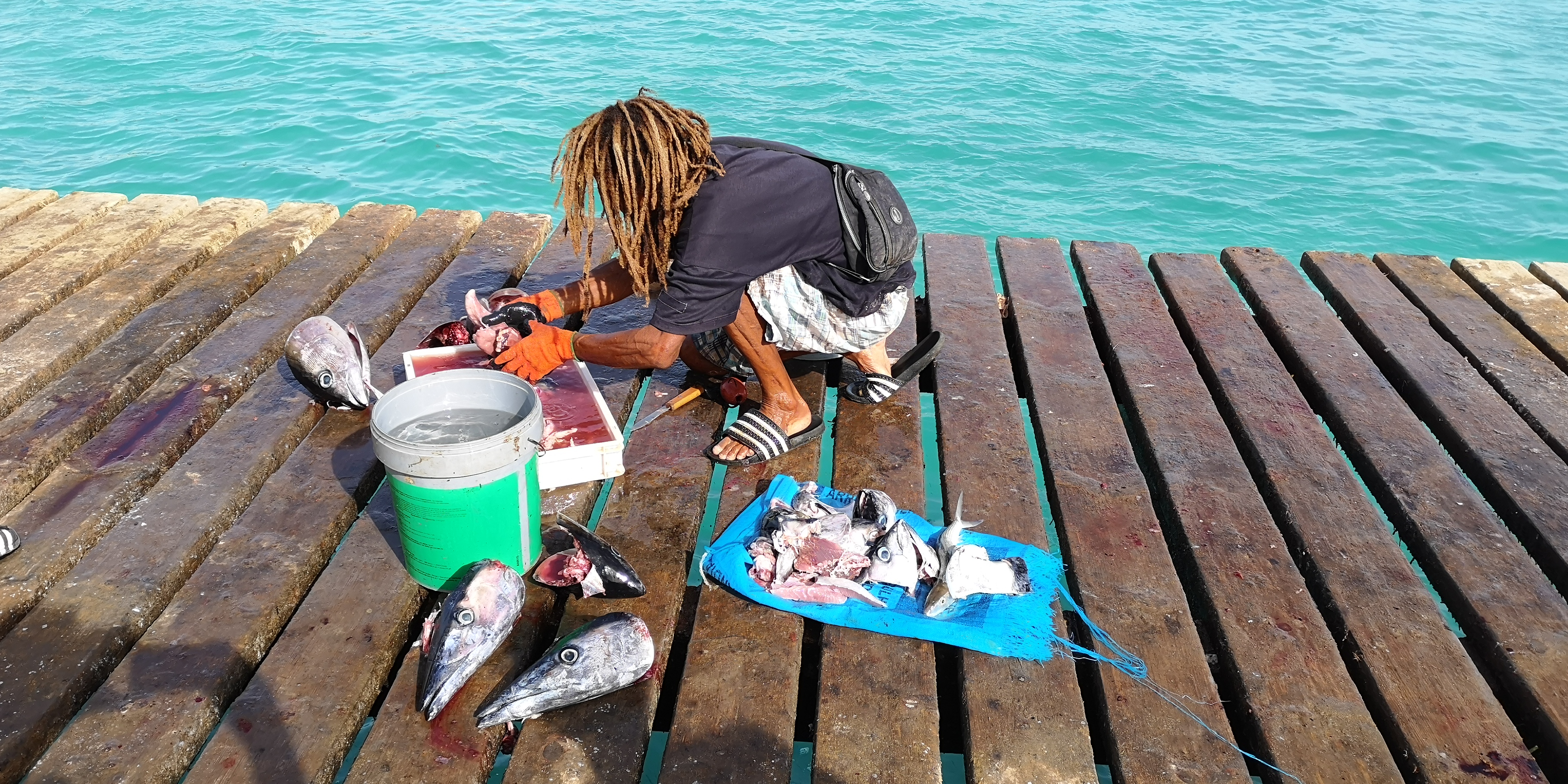 Santa Maria: Auf dem Steg wird der Fang des Tages zum Kauf angeboten. Hier Thunfisch.