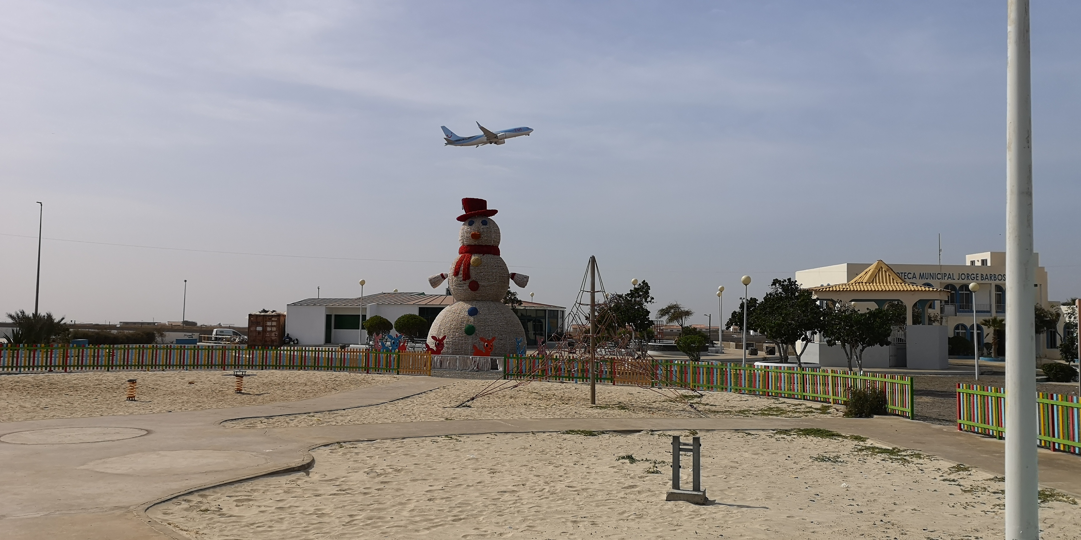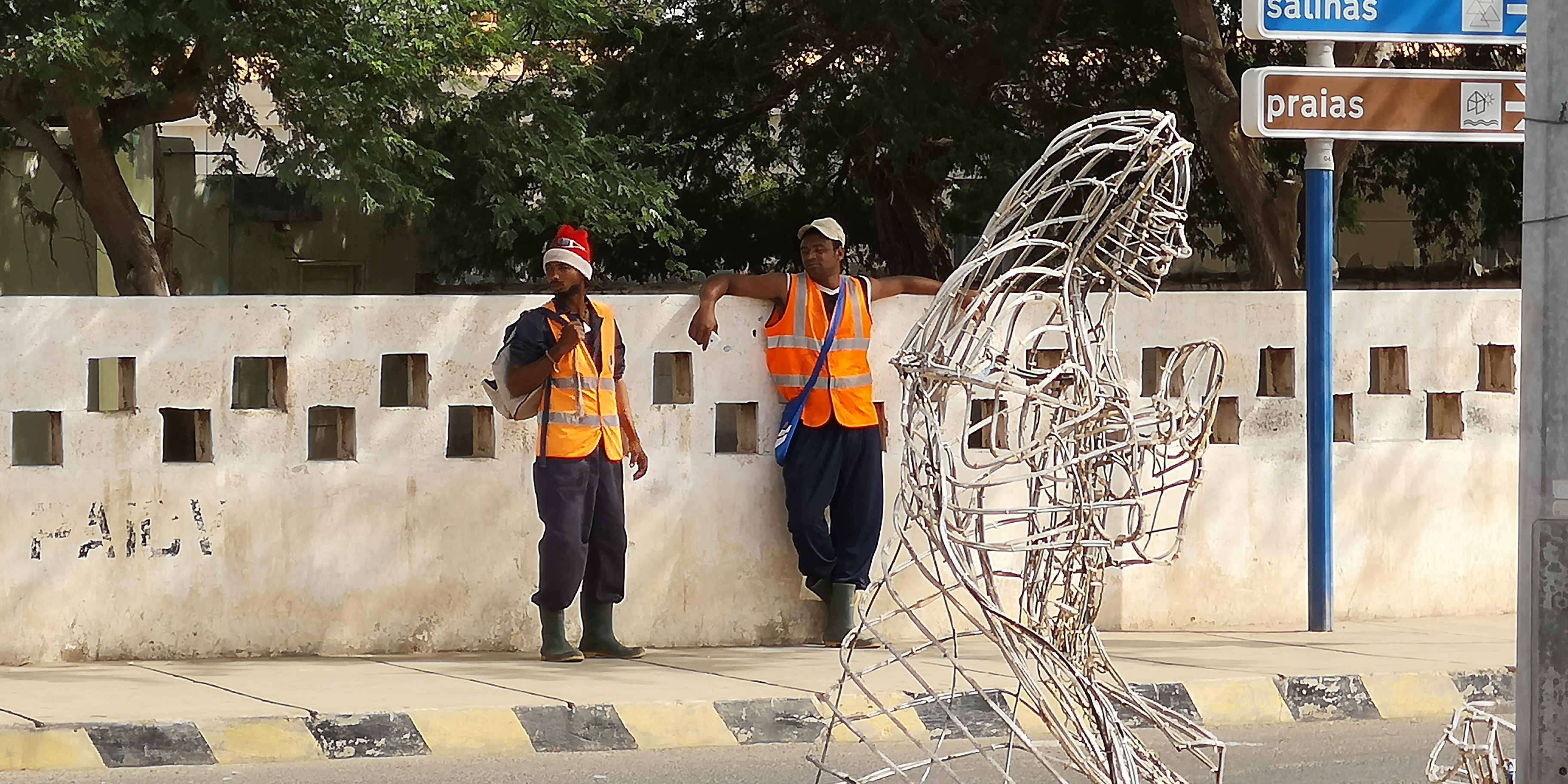 Espargos: Strassenarbeiter mit Weihnachtsmütze