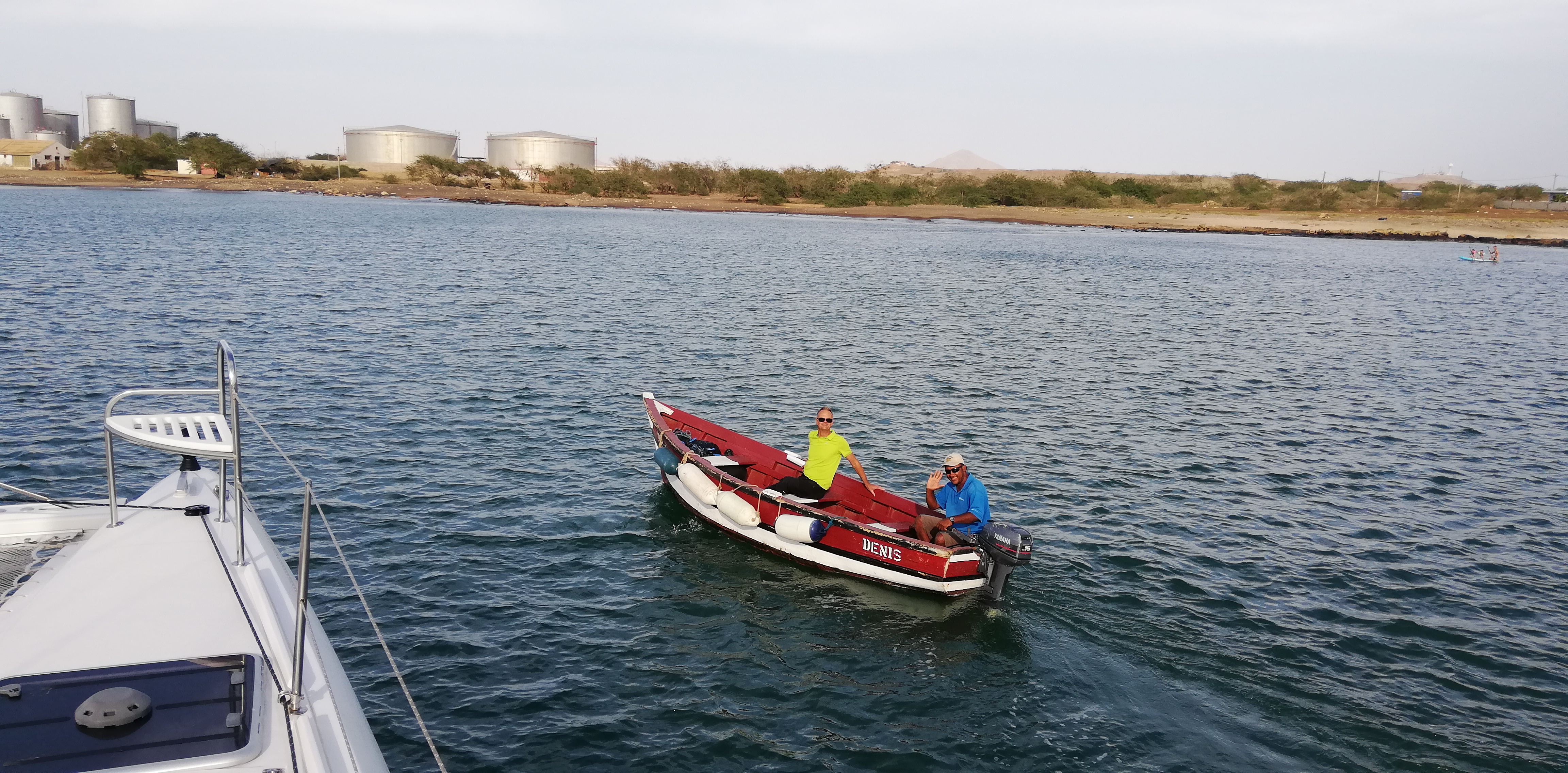 „DJ“ mit seinem Taxi-Boot „Denis“ fährt den captain zum Einklarieren