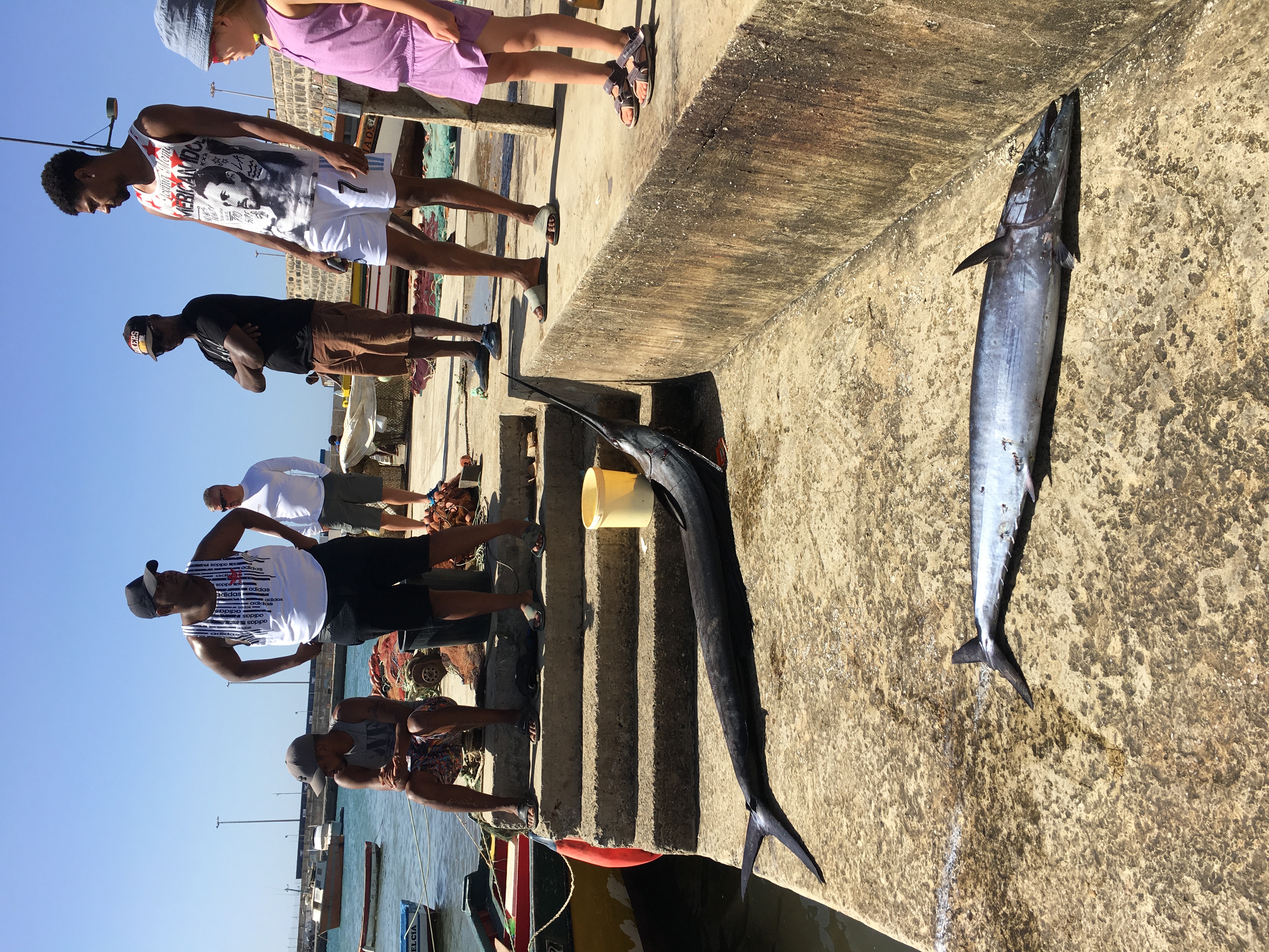 Santa Maria: Auf dem Steg wird der Fang des Tages zum Kauf angeboten. Ich glaube, das ist eine Goldmakrele – oder weiß jemand mehr?