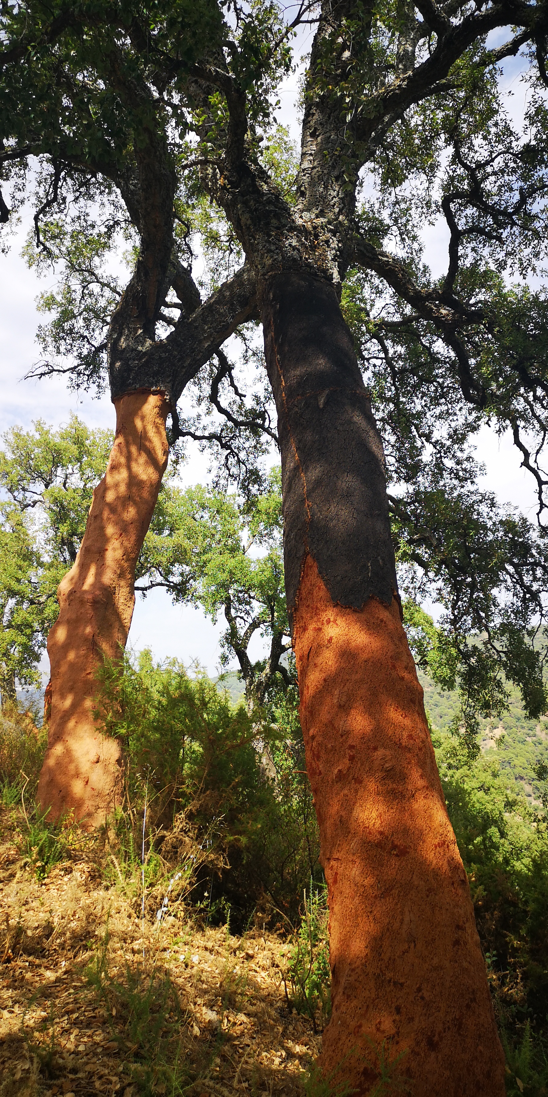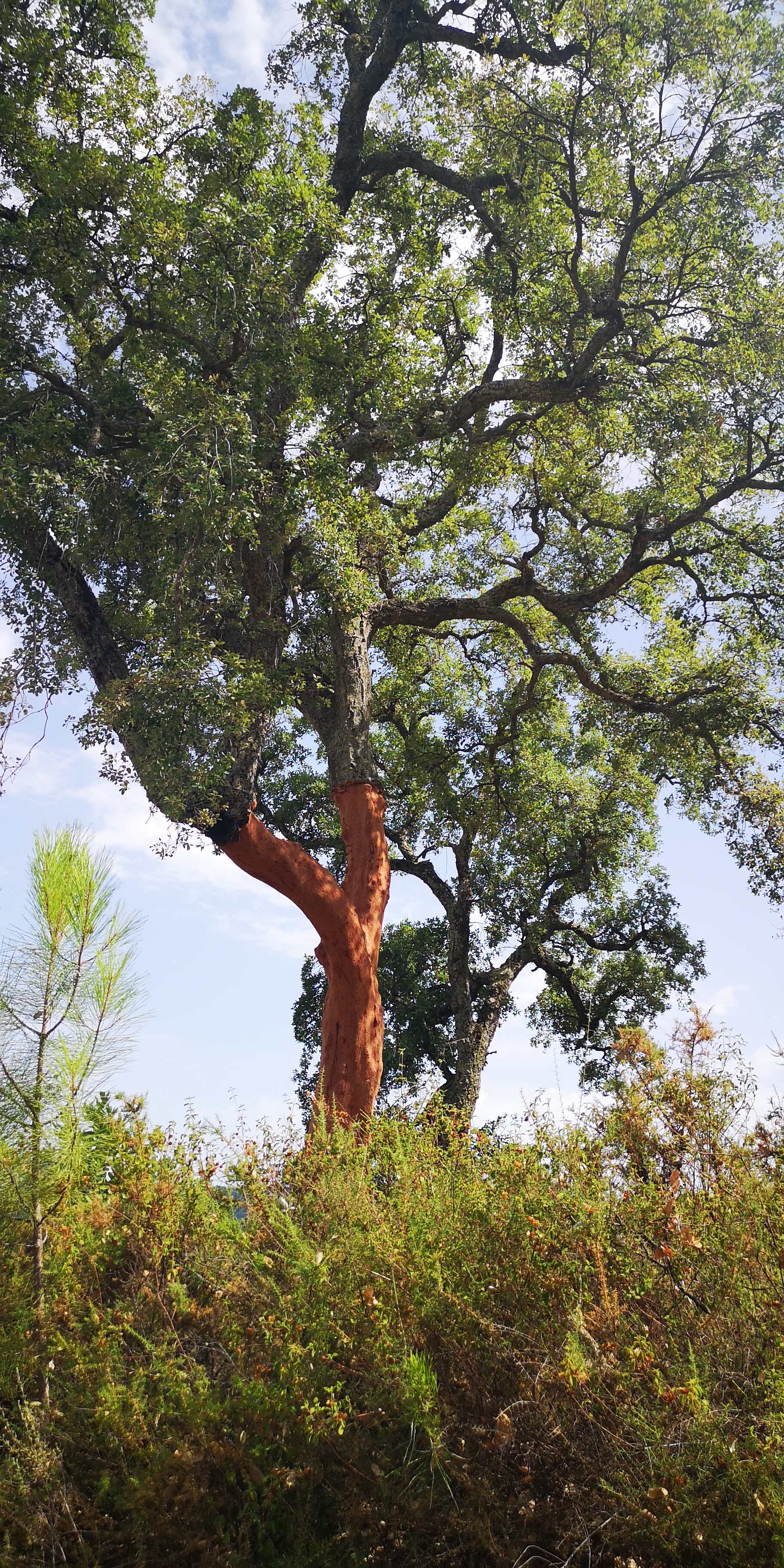 UInterwegs treffen wir vielerorts auf Korkeichen, bei denen die Rinde zur Korkgewinnung abgeerntet wurde: