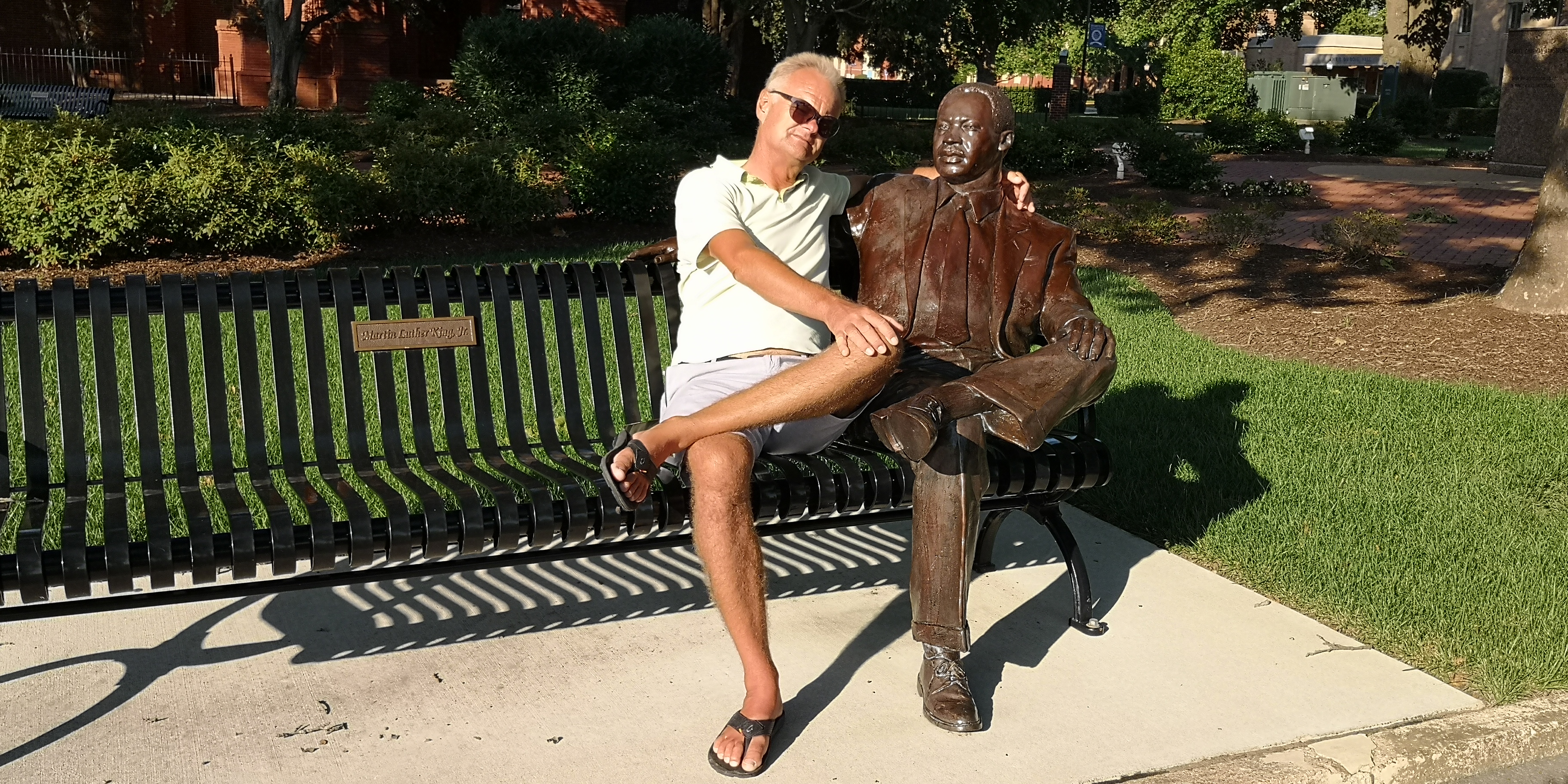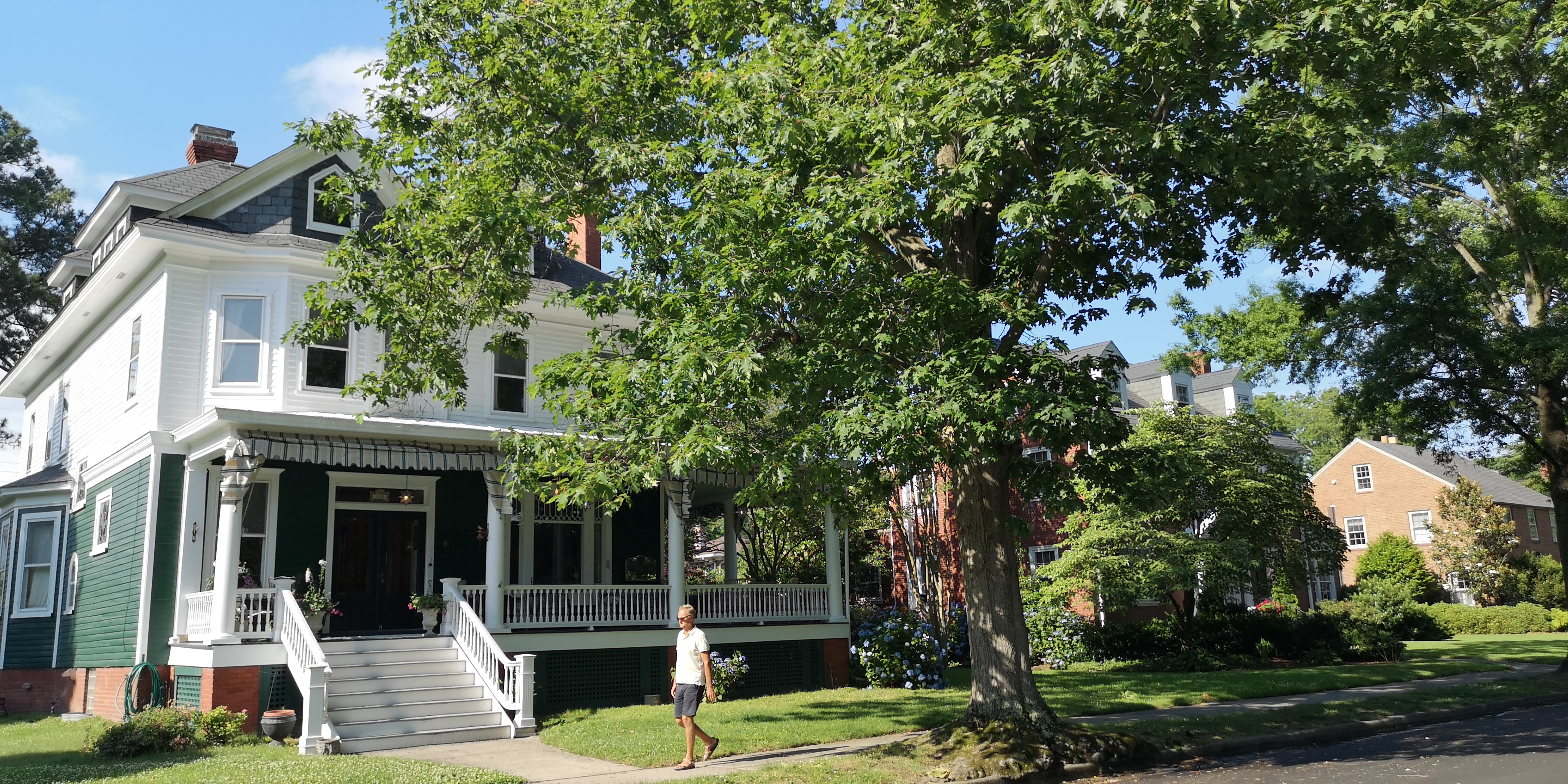 Im Zusammenhang mit dem Bau der elektrischen Eisenbahn baute man hier Ende des 19.Jahrhunderts und Anfang des 20.Jahrhunderts in verschiedenen Baustilen (Queen Anne, Colonial Revival, American Foursquare) und schuf mit Elektrifizierung und Schule bessere Lebensbedingungen. In der Little England Chapel konnten auch Afroamerikaner zur Sonntagsschule gehen. Von ihnen gab es damals viele in Hampton, denn es ging das Gerücht, befreite Sklaven könnten in Hampton gut leben und das sorgte für einen Zustrom an Afroamerikanern. Uns fällt dieser große Unterschied zwischen Beaufort und Hampton heute noch auf: In Beaufort sahen wir keine farbigen Menschen, in Downtown Hampton dagegen viele. Ein weiterer großer Unterschied ist das Covidreglement. Während in Beaufort North Carolina fast niemand eine Maske trug, herrscht hier in Virginia Maskenpflicht in öffentlichen Räumen und im öffentlichen Verkehr und man hält sich daran auch.