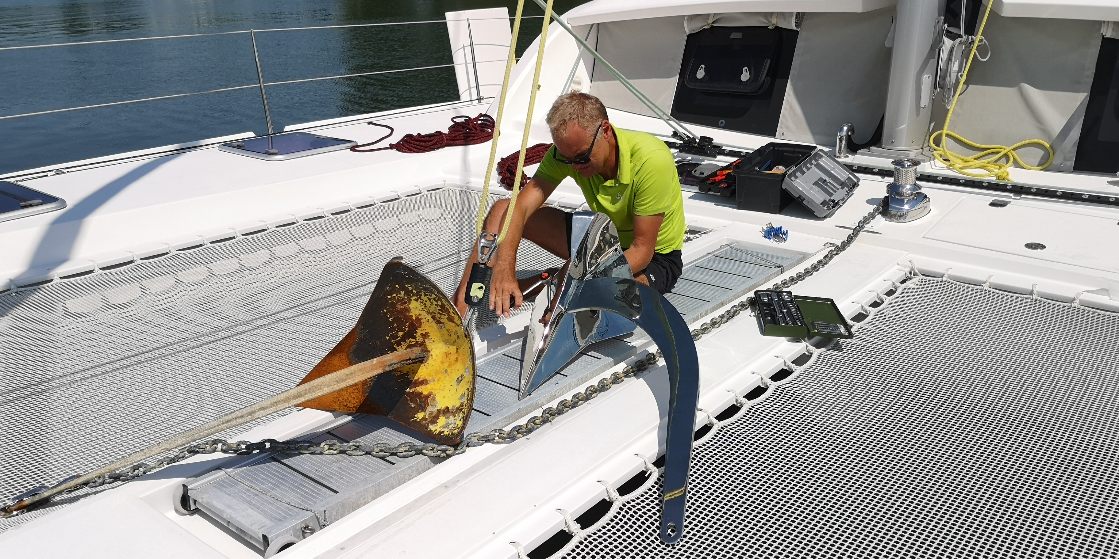 Wesentlicher sind allerdings unsere weiteren Bestellungen: Die Navionics Karten USA für den Chartplotter treffen ein und unser neuer Spade Anker. Eine Schweißnaht am bisherigen Spade Anker war offenbar mangelhaft. Bereits in den Bahamas war uns aufgefallen, dass die Naht am Schaft immer weiter auseinander ging. Spade erkennt das als Garantiefall an (es gibt eine „lifetime warranty“ von Spade) und sendet uns einen neuen Anker im Austausch gegen unseren bisherigen. Wir wählen Edelstahl anstelle des bisherigen galvanisierten, weil bei Edelstahl der Schaft aus einem soliden Stück gefertigt ist anstelle des aus 3 Platten zusammengeschweißten. Mit dem Spade Anker haben wir in Bezug auf die Haltekraft sehr gute Erfahrungen gemacht.