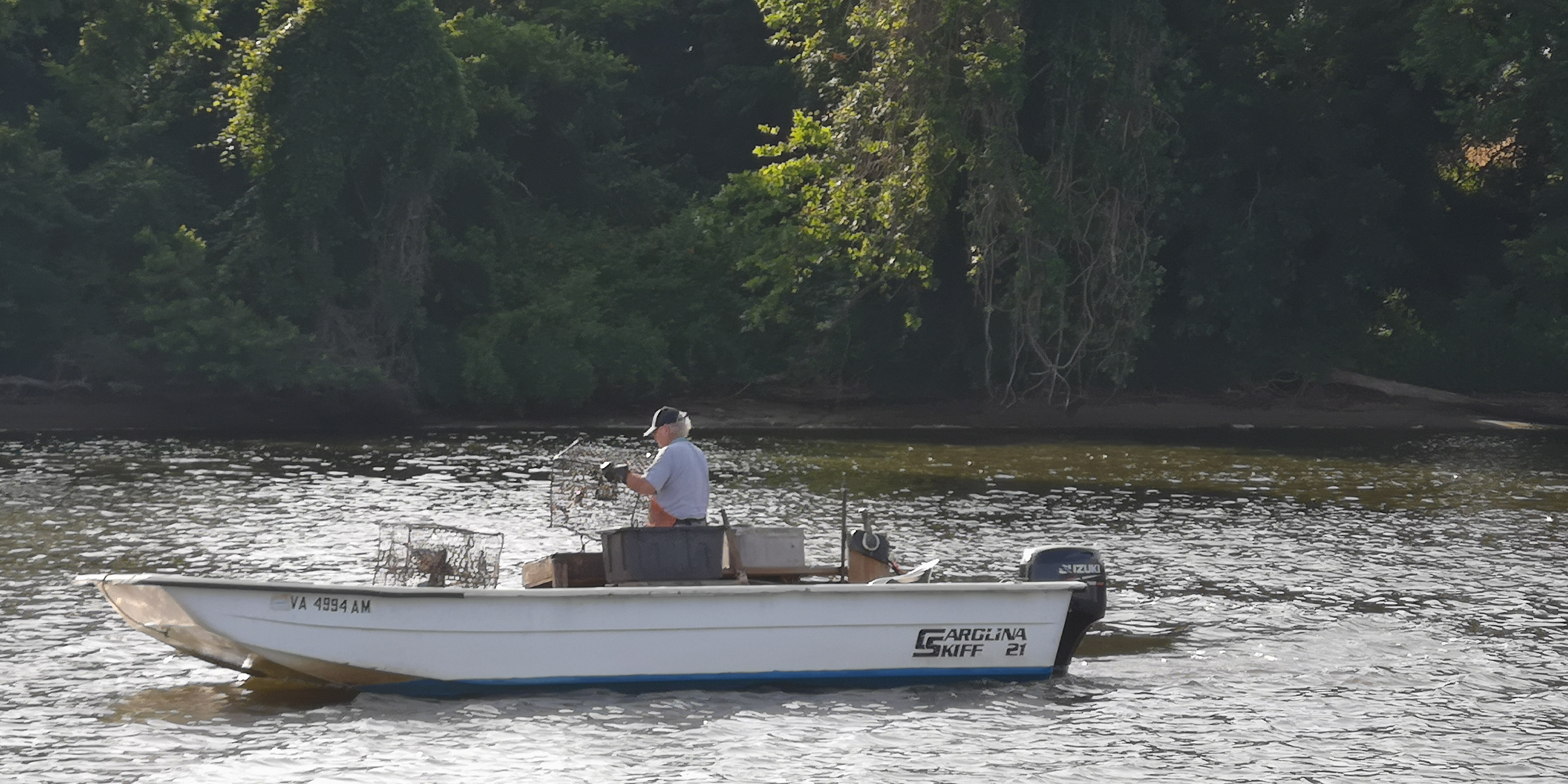 Im Urbanna Creek können wir beobachten, wie morgens die Fischer die Reusen unter den Bojen hoch ziehen und den Fang abholen.