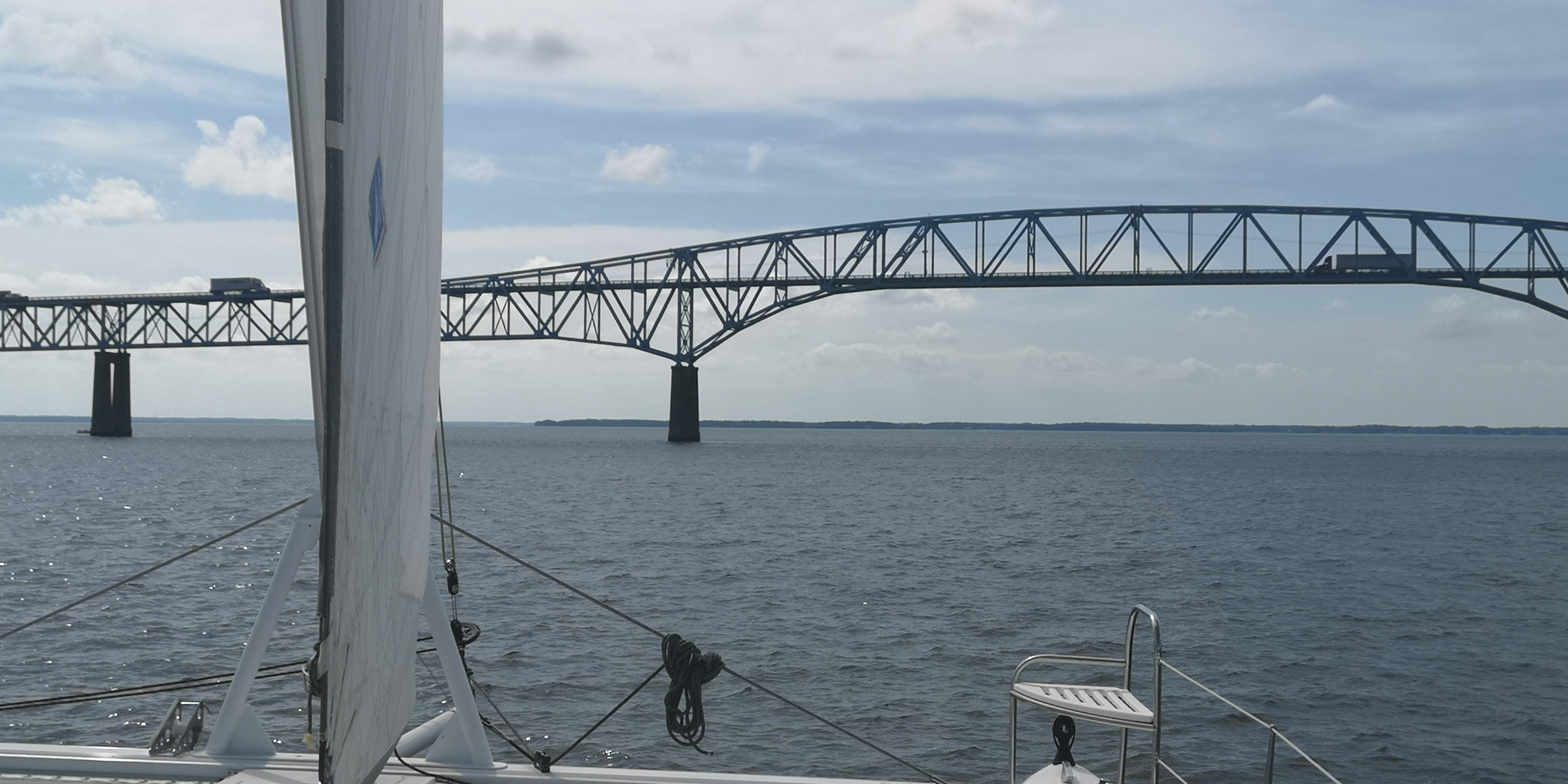 Mit der INVIA endet die Fahrt vor Brücken mit nicht ausreichender Höhe für unseren 23m langen Mast. Unsere erste Brückendurchfahrt machen wir im Rappahannock River. Auch wenn die Brücke mit 33,5m längst genug Höhe für uns hat, ist die Durchfahrt spannend. Irgendwie sieht es bei der Anfahrt immer so aus, als sei der Mast womöglich doch zu hoch.