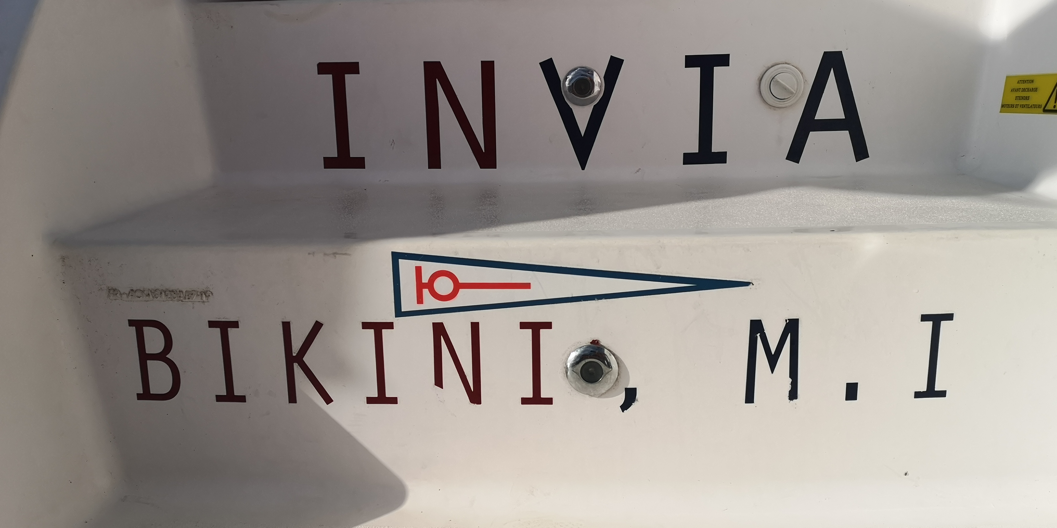 Zunächst gehe ich sehr hoch an den Wind, etwa 32-35 Grad AWA (Apparent Wind Angle – Winkel zum scheinbaren Wind). Ich muss INVIA, bereits im 2ten Reff, durch Auffieren der Großschot etwas bremsen. Denn obwohl wir laut Refftabelle im grünen Bereich sind, wird sie zu schnell. Bei Kursen hart & sehr hart am Wind sollte sie nicht mehr als 9 kn durchs Wasser machen, damit die Belastung auf Rigg & GFK-Struktur nicht zu groß wird. Da es ordentlich gegen die Wellen geht, ist dieses Limit Ernst zu nehmen.