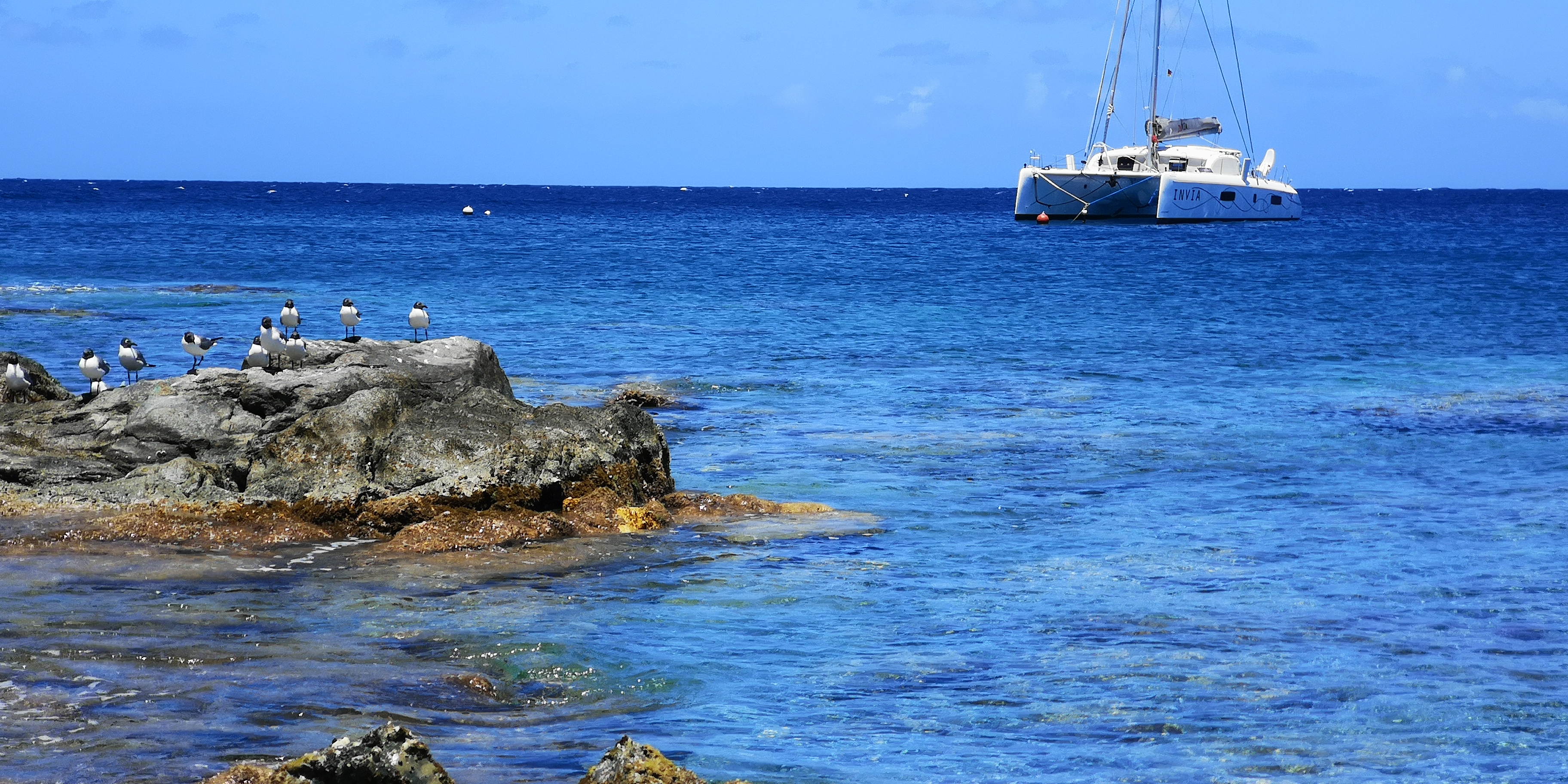 Etwas südlich von Charlotte Amalie (St Thomas) liegt das kleine Naturschutzgebiet Buck & Capella Islands. Wir legen uns an eine der zahlreichen Bojen. Es gibt weisse und rote – ein System habe ich nicht herausgefunden. Die meisten roten sind recht nah am Riff oder Strand, und wohl für kleinere Boote. Aber nicht durchgehend. Die weissen sind teilweise gut, mindestens eine aber sehr mässig mit einer bereits rissigen Schot befestigt. Die dürften einer INVIA bei kräftigerem Wind kaum noch Halt bieten.