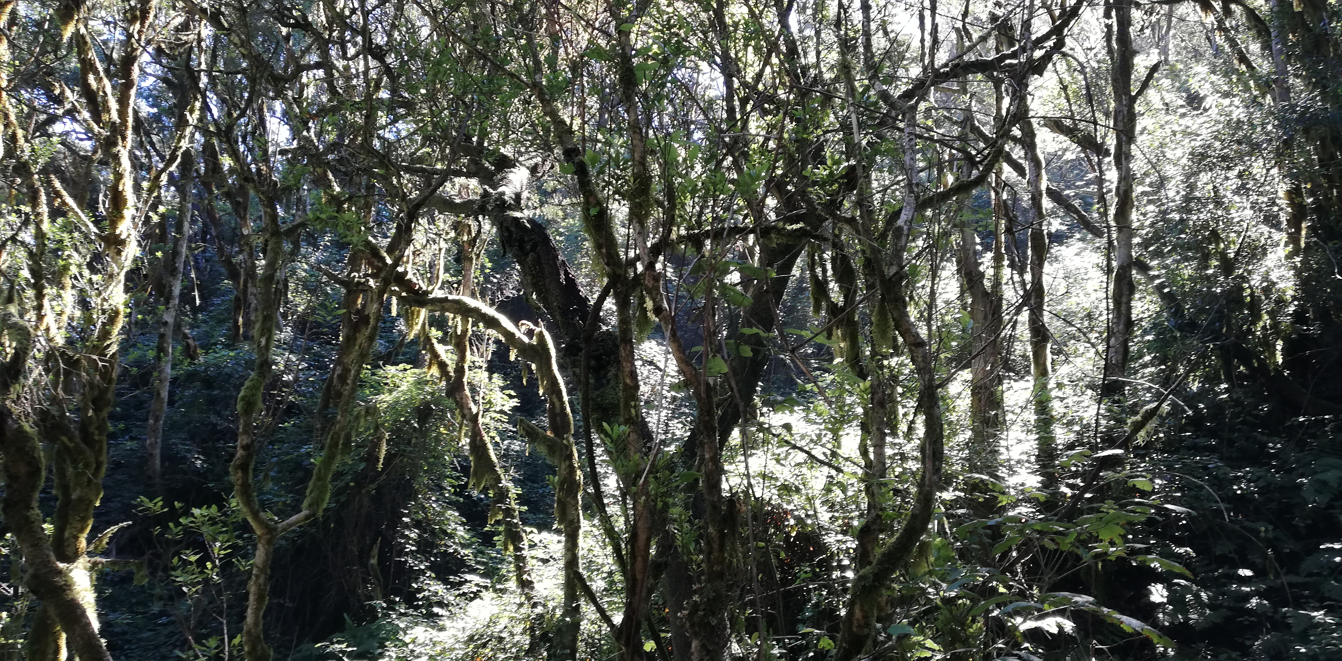 Mit dem dem Taxi fahren wir knapp 8km aus San Sebastian auf der GM-1 bis kurz vor den Mirador A. Lazcano, wo wir den Wanderpfad Richtung Enchereda beginnen. Beim Bauernhof Enchereda gabelt sich der Weg, wir nehmen den linken, kürzeren aber steileren Pfad Richtung Hermigua.