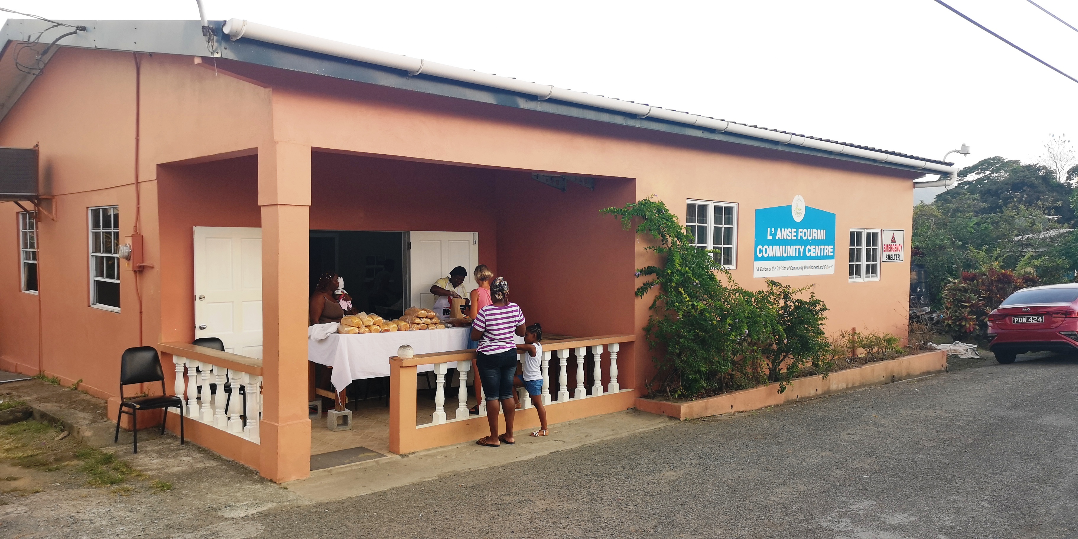 Häuser in CharlottevilleOpen-Air KücheBar mit Lautsprecherparade und WeihnachtsdauerschmuckStrand von Charlotteville